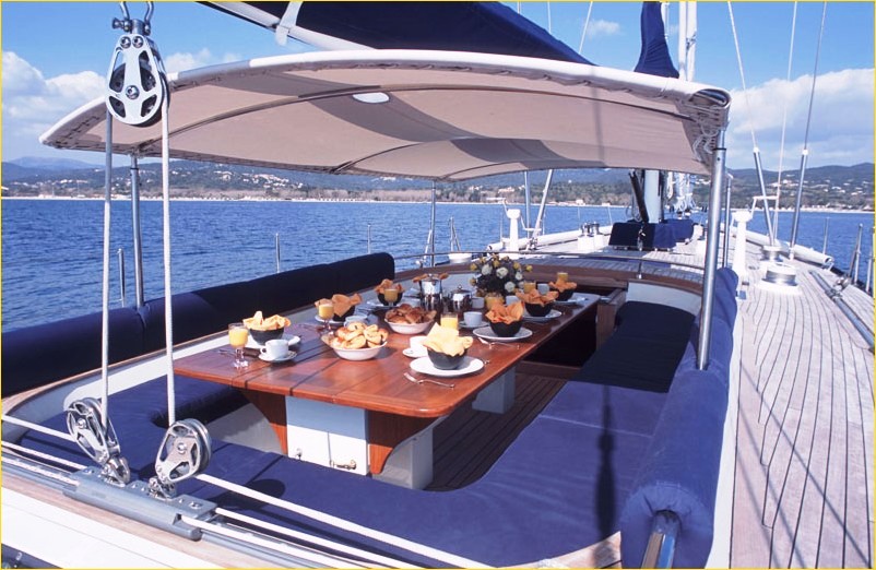 Every last piece of machinery, wiring, pipework, woodwork, in fact nearly everything was replaced to bring her up to date. It is no exaggeration to say that about the only original parts are the hull and mast. The complete re-design of her interior has created a contemporary feel and the clever use of space means that crew and guests can relax equally as well in their own areas. She has been re-built to comply with MCA code 0 affording an extremely high level of safety normally reserved for much larger vessels.