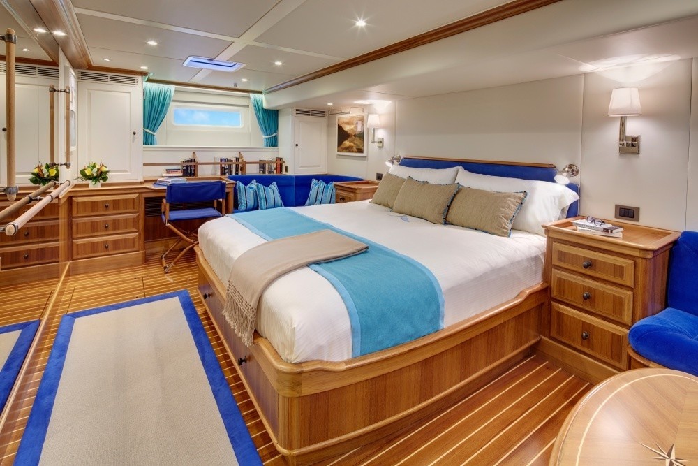 CYGNUS MONTANUS offers accommodation in one spacious full beam master suite and three guests cabins, for a total of eight guests on board. All suites have en-suite bathroom facilities and luxury amenities.