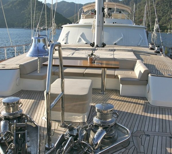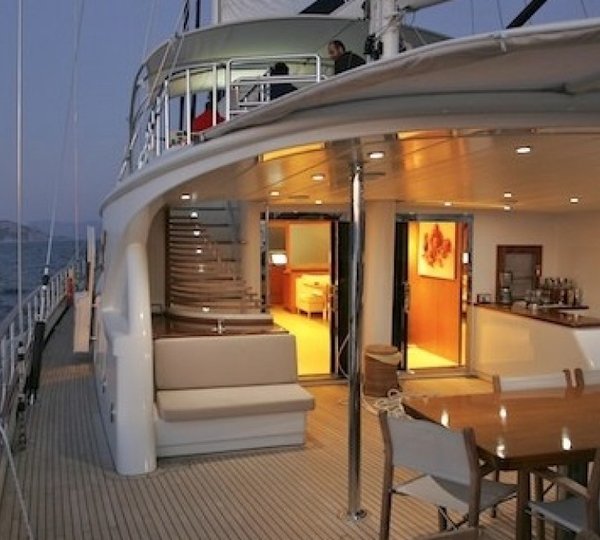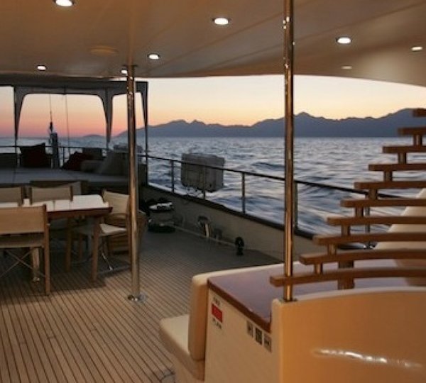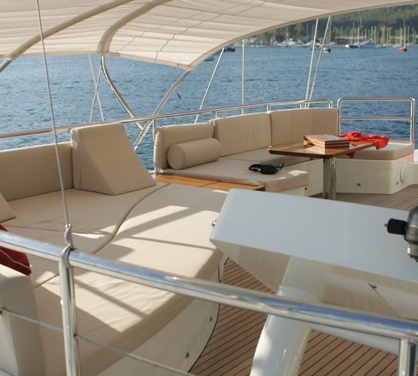 Charter yacht LEVANTIN makes the most of her ample deck space, the aft deck offers large aft sunpads that can be used as sunning space or covered for lounging, an alfresco dining option and cocktail seating for the sundowners from the drinks bar located on the starboard side.