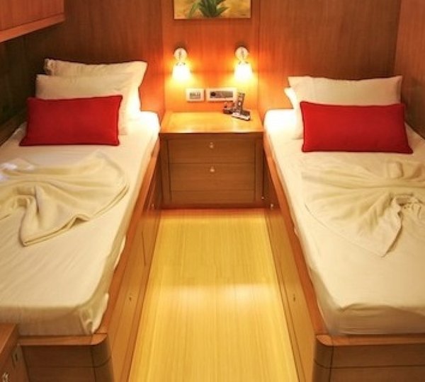 Luxury Gulet LEVANTIN accommodated 8 guests in 4 cabins, the 2 master cabins are full beam of the yacht, the VIP cabin is located on the port side, and a further twin guest cabin is on the starboard side, all cabins have en-suite facilities.
