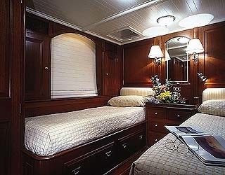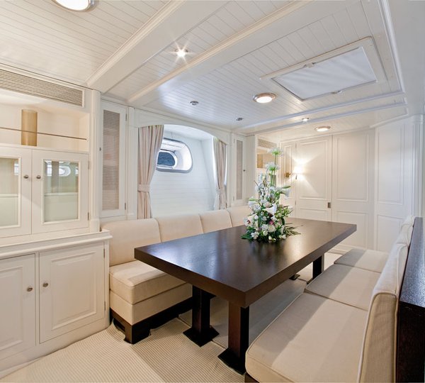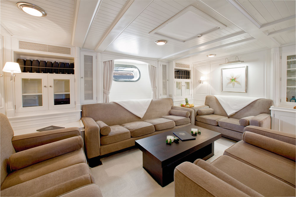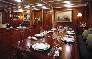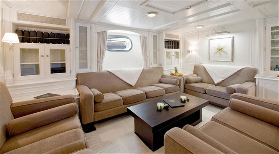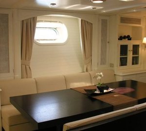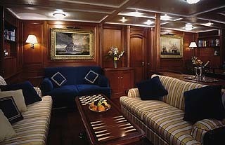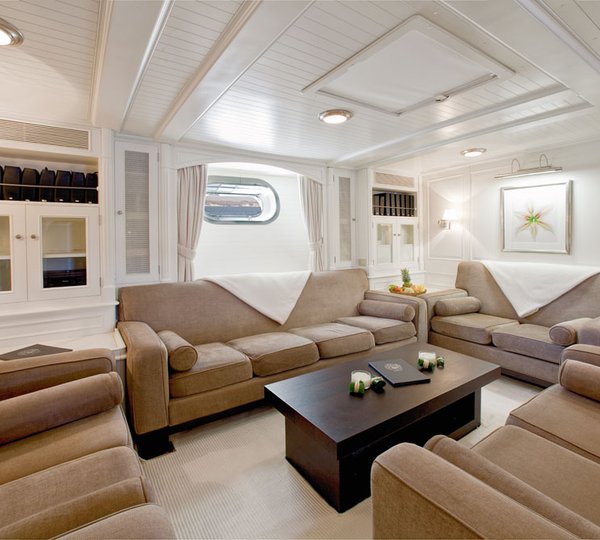 Sailing yacht MARI CHA III features a traditionally styled interior which was designed by John Munford. The interior boasts rich woodwork which was superbly crafted by skilled cabinet makers. All the panelling and frames are executed in thin veneers of Honduras Mahogany. Marble surfaces, beautiful fabrics, "objets d'art" and luxurious accoutrements have been carefully selected to enhance S/Y MARI-CHA III's beautiful interior.