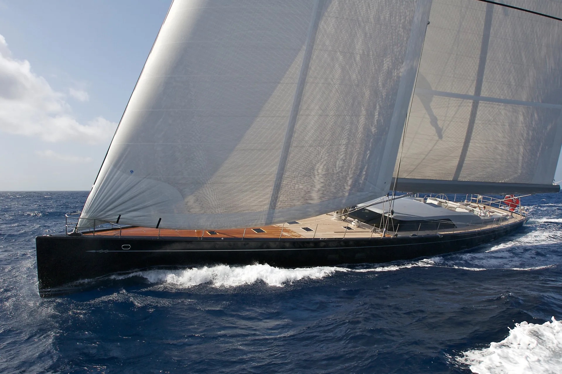 With the waterline of 39 metres, MYSTERE has 190 tons of displacement, providing her with great speed and ease of handling. A preference for volume in length, rather than beam, provides this fantastic sailing vessel with space and ability for comfortable globetrotting. Mystère yacht performs well both in the light air of the Mediterranean as well as during longer cruises.