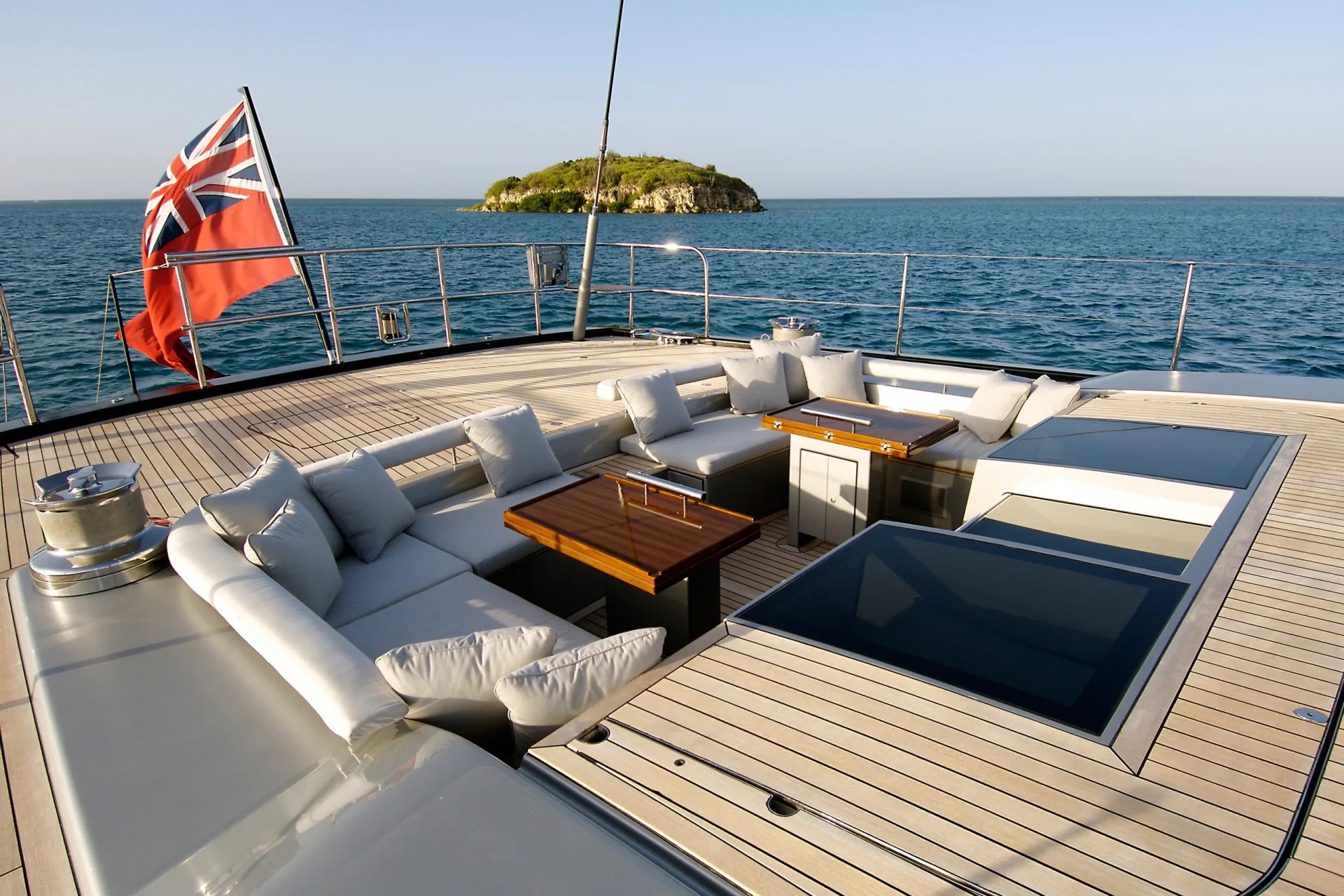 Rhoades Young created a sophisticated interior with a modern look and comfortable feel. A sense of consistency and calmness was paramount, without unnecessary detail. Both the interior and the exterior boast interesting innovations, making sure guest on board MYSTERE have an unparalleled yachting experience.