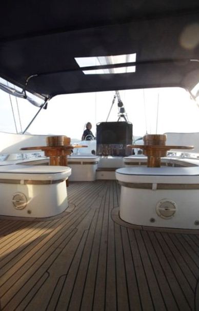 On deck, the ROMEO & Co sailing yacht has twin helms located aft, leaving the central cockpit for guests to enjoy cruising or al fresco dining under the canopy. The guest cockpit has two independent tables that allow free passage for easy access to the deck. The foredeck is very spacious and comfortable to manoeuvre at sea or at anchor gives you plenty of space for sunbathing.
