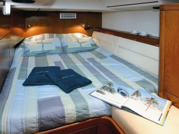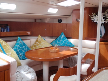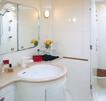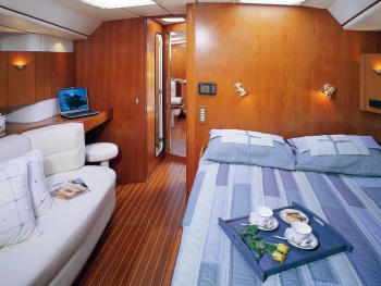 Sailing yacht ‘Runaway Bunny’ doesn’t merely employ great practical cruising design she also features a high quality, stylish and comfort interior. For instance, her large master stateroom forward has a double berth, separate head and shower. There is a guest head, which can double as his/ her private ensuite (if using the master stateroom as a suite). Aft but to port is the yacht’s guest stateroom, which also has a double bed and ensuite with separate shower. Lastly, the third guest cabin offers an upper and lower bed.