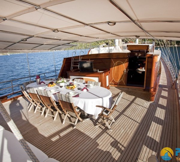 Ketch rigged S. DOGU has a beam of 7.9m (25.9ft) and a draft of 3.5m (11.4ft), she is powered by 2 X Iveco 360HP engines that can reach speeds of up to 10 knots.