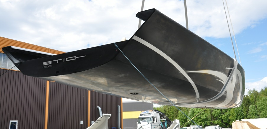 Boasting a prepreg carbon epoxy sandwich laminate with Kevlar Honeycomb core in both the hull and deck, the innovative superyacht STIG features the fixed keel with an amazing draft and the retractable propeller system which enables a flush underwater hull while sailing. STIG is also fitted with a Hall Spars carbon mast with racing boom and a composite standing rigging.