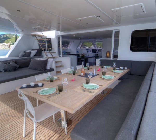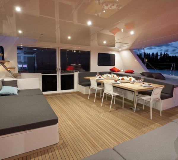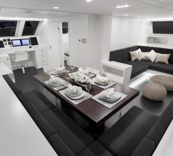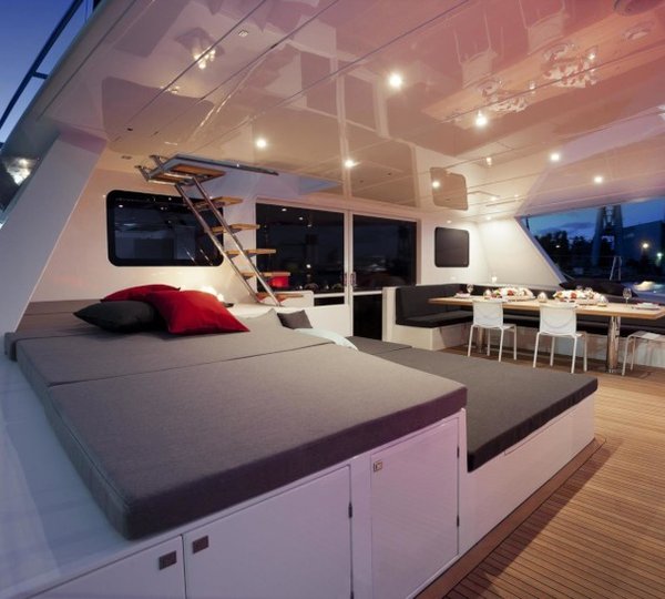 NOTABLE FEATURES: Wide catamaran design~Contemporary interiors~Array of water toys~Motivated crew~Kite surfing~Wi-fi