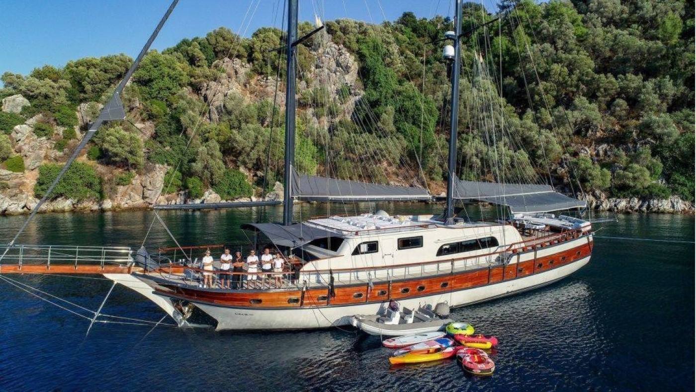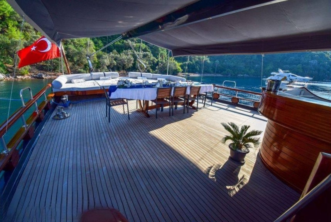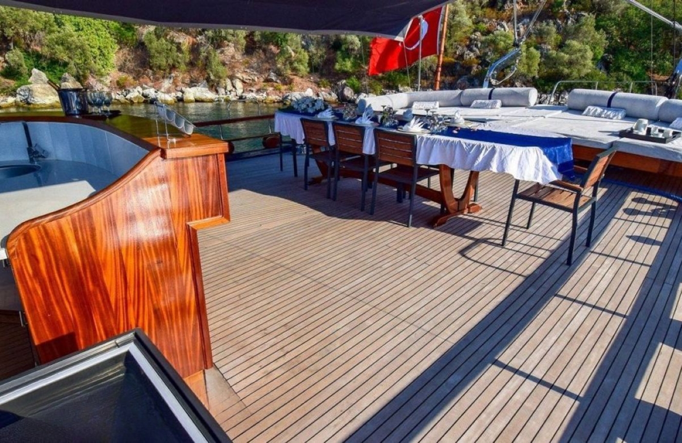 Gulet UGUR 2006 is a 32-meter motor sailor yacht that was launched in 2006 and most recently refitted in 2019. Sailing yacht UGUR 2006 is a deluxe category yacht comprising of seven cabins, including a master cabin and 6 double cabins able to accommodate 14 charter guests. She is not only a very spacious and comfortable charter yacht, but she is also fully equipped for all guest's needs. The yacht is based in Turkey, available for luxury yacht charters throughout the Eastern Mediterranean.