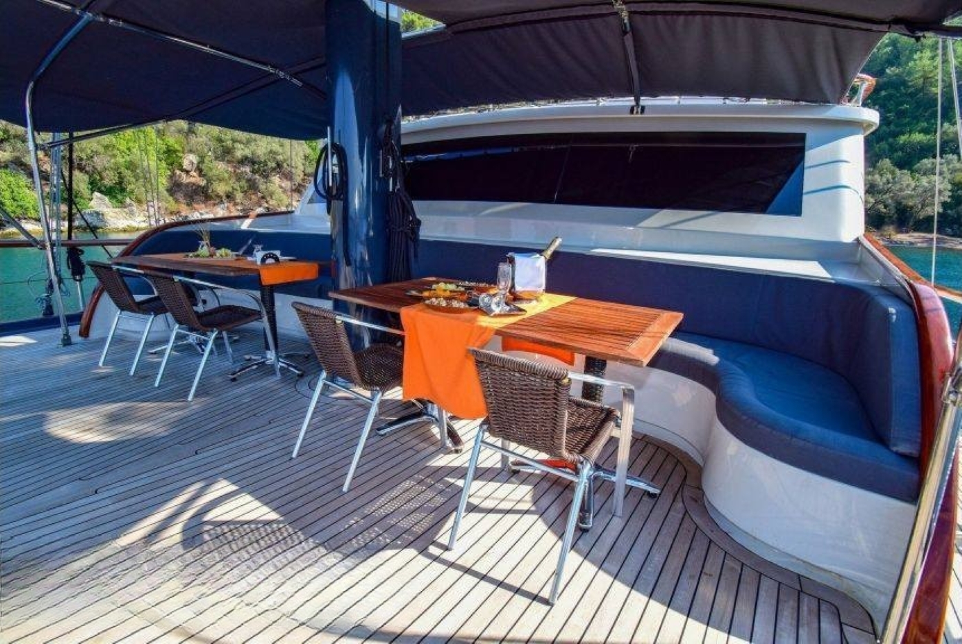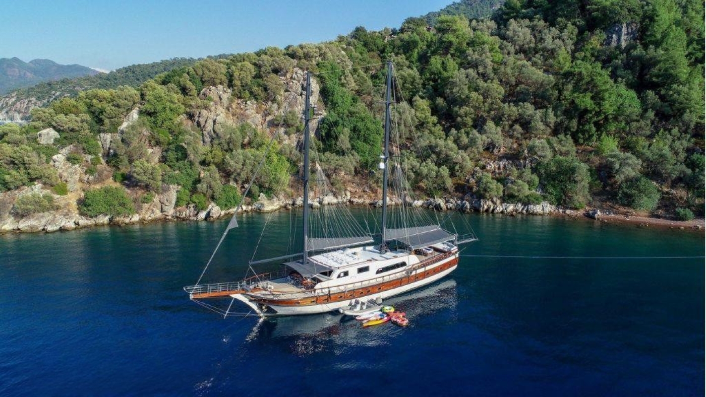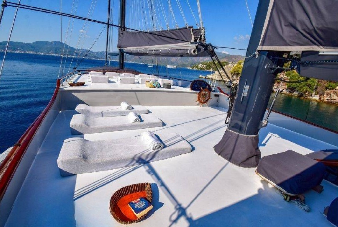 Gulet UGUR 2006 is a 32-meter motor sailor yacht that was launched in 2006 and most recently refitted in 2019. Sailing yacht UGUR 2006 is a deluxe category yacht comprising of seven cabins, including a master cabin and 6 double cabins able to accommodate 14 charter guests. She is not only a very spacious and comfortable charter yacht, but she is also fully equipped for all guest's needs. The yacht is based in Turkey, available for luxury yacht charters throughout the Eastern Mediterranean.