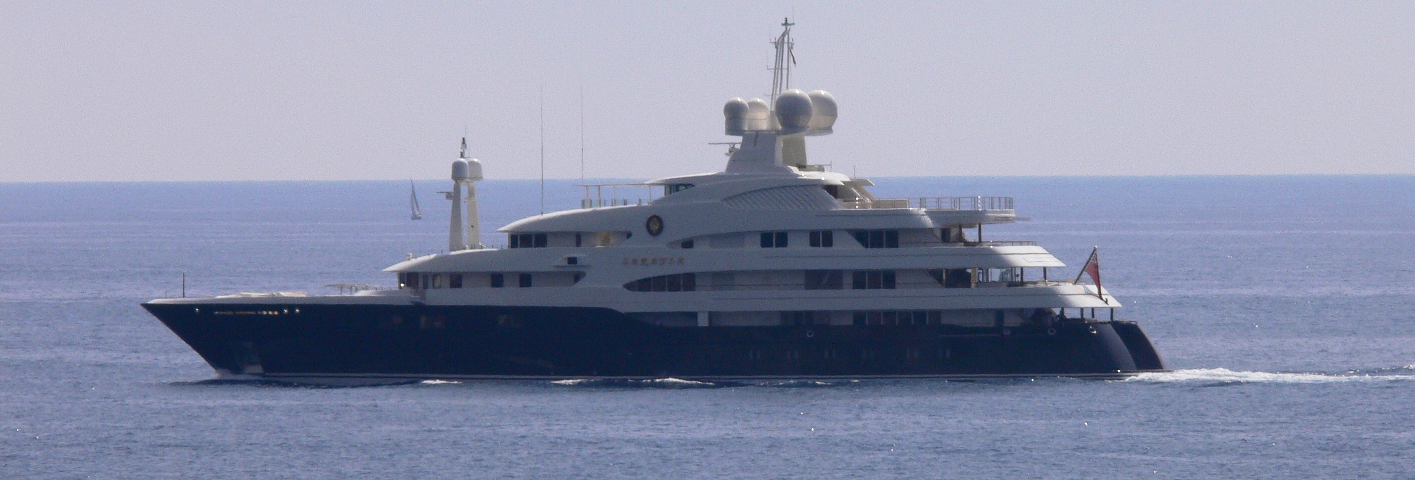 M/Y SARAFSA is was designed for a Middle Eastern owner who previously owned a 54m Amels now called M/Y Faribana. The 82m majestic yacht has a six-deck structure, a glass topped atrium, a winter garden style dining room that can be open or enclosed thanks to sliding glass screens and a spa with a retractable roof on the sun deck, forward of the helipad. The mega yacht SARAFSA has a wide range of amenities including her own car.