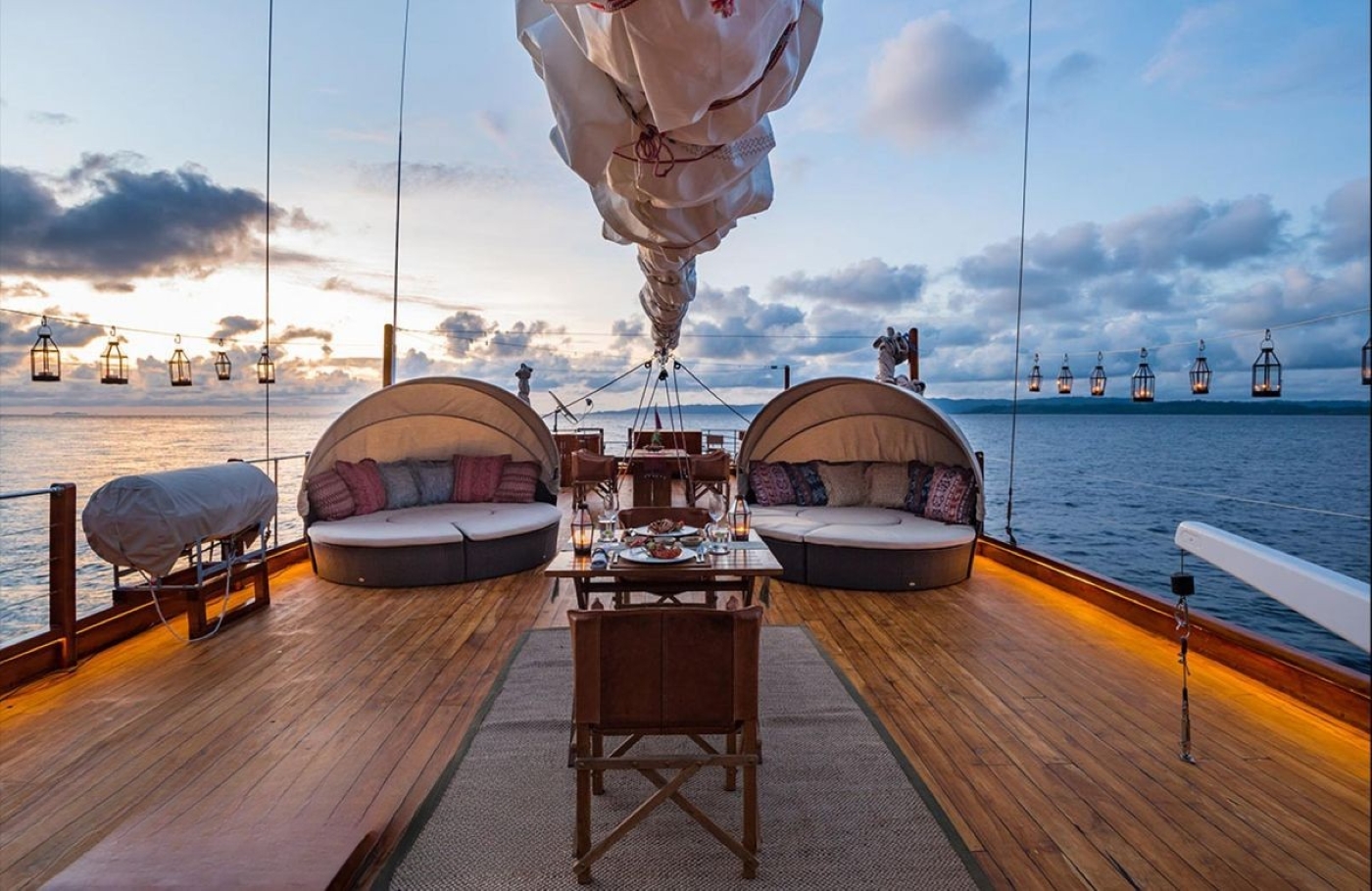 NOTABLE FEATURES for SEQUOIA: Traditional Indonesian styled yacht ~ Eco-friendly amenities ~ Local crew with excellent knowledge ~ All-inclusive charter rates ~ Vast cruising locations ~ Spacious onboard living