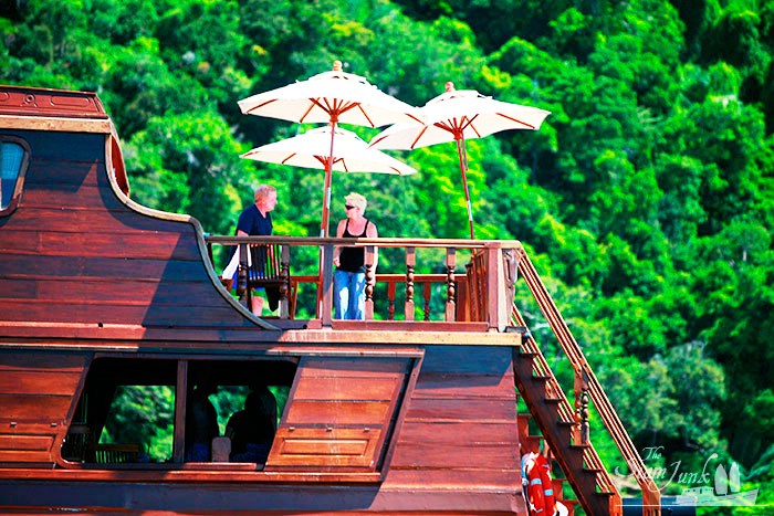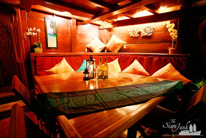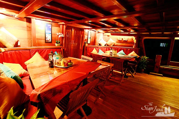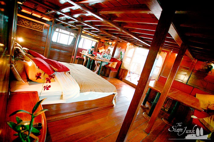 The luxury vessel SIAM JUNK has spacious suites you could compare the comfort of a luxury villa with the magical difference that the location and view change every day. All six bedrooms are finished to a luxurious standard and come with king size beds, en-suite bathrooms with powerful hot and cold water showers, hot and cold water wash basins, full sized WC, hairdryer and complimentary bathrobes.