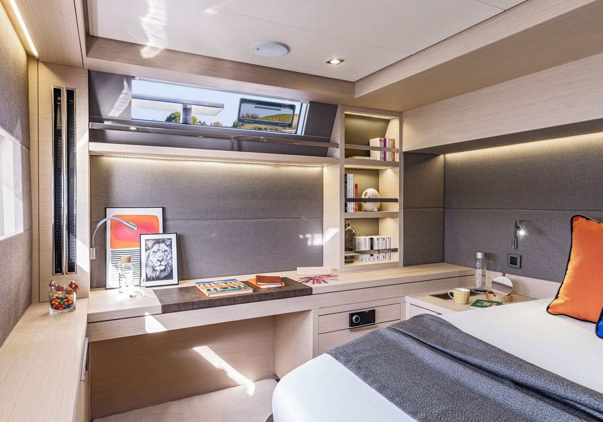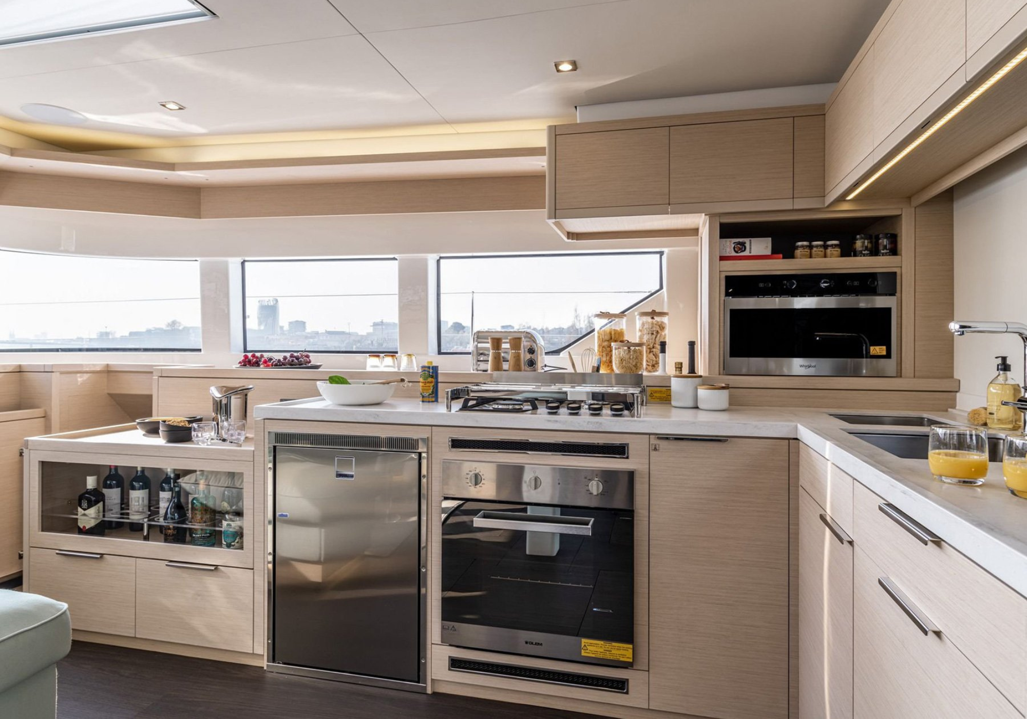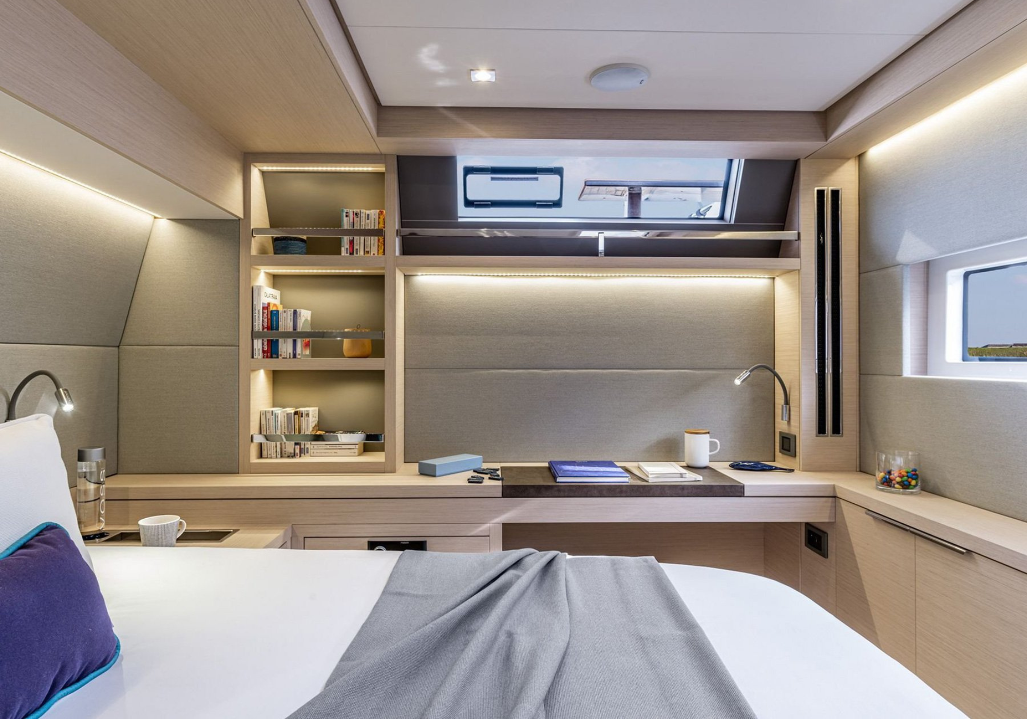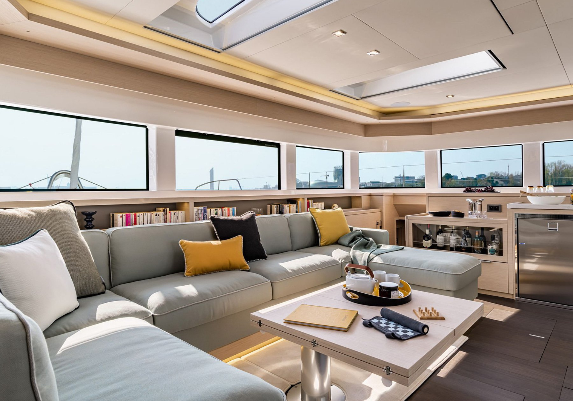 Inside, SOFIA’s elevated saloon is flooded with natural light thanks to expansive wraparound windows, creating a bright and welcoming atmosphere. Soft neutral tones, warm wood finishes and contemporary furnishings combine to evoke understated luxury and relaxed sophistication.