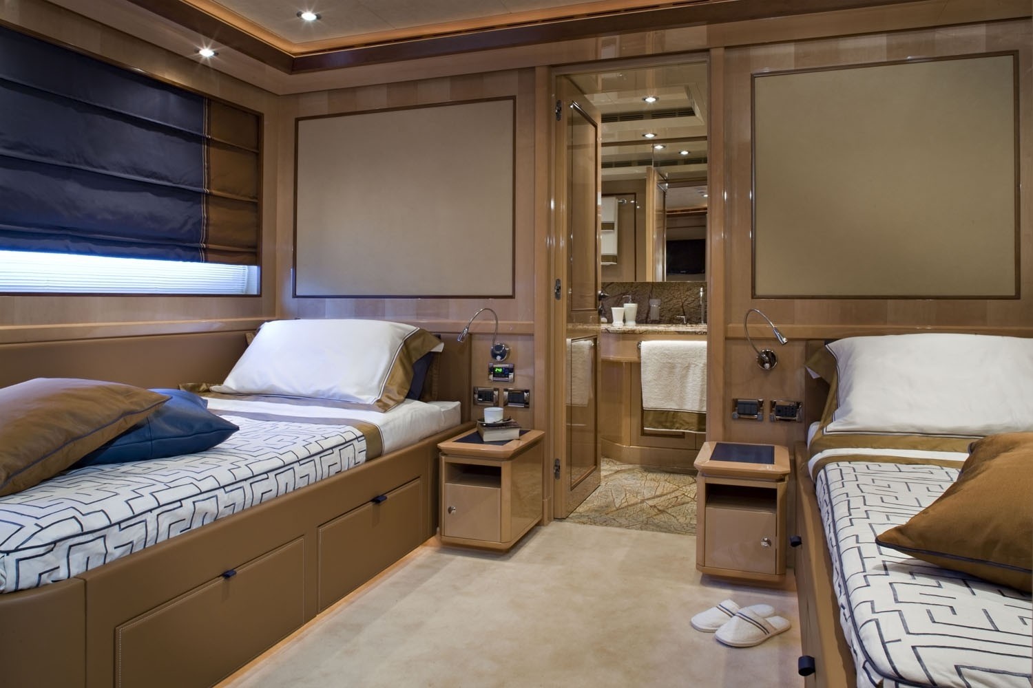 She is engineered with two quality CATERPILLAR diesel engine(s) and can reach a industrious top speed of approximately 15.5 knots. The engine of the SOFICO generates 1500 horse power (or 1044 kilowatts). Her total HP is 3000 HP and her total Kilowatts are 2147. Coupled to the SOFICO engines are twin screw propellers. For stabalisers she utilises Mitsubishi. The boat’s efficient cruise speed is 13 knots which makes a range of 4000.