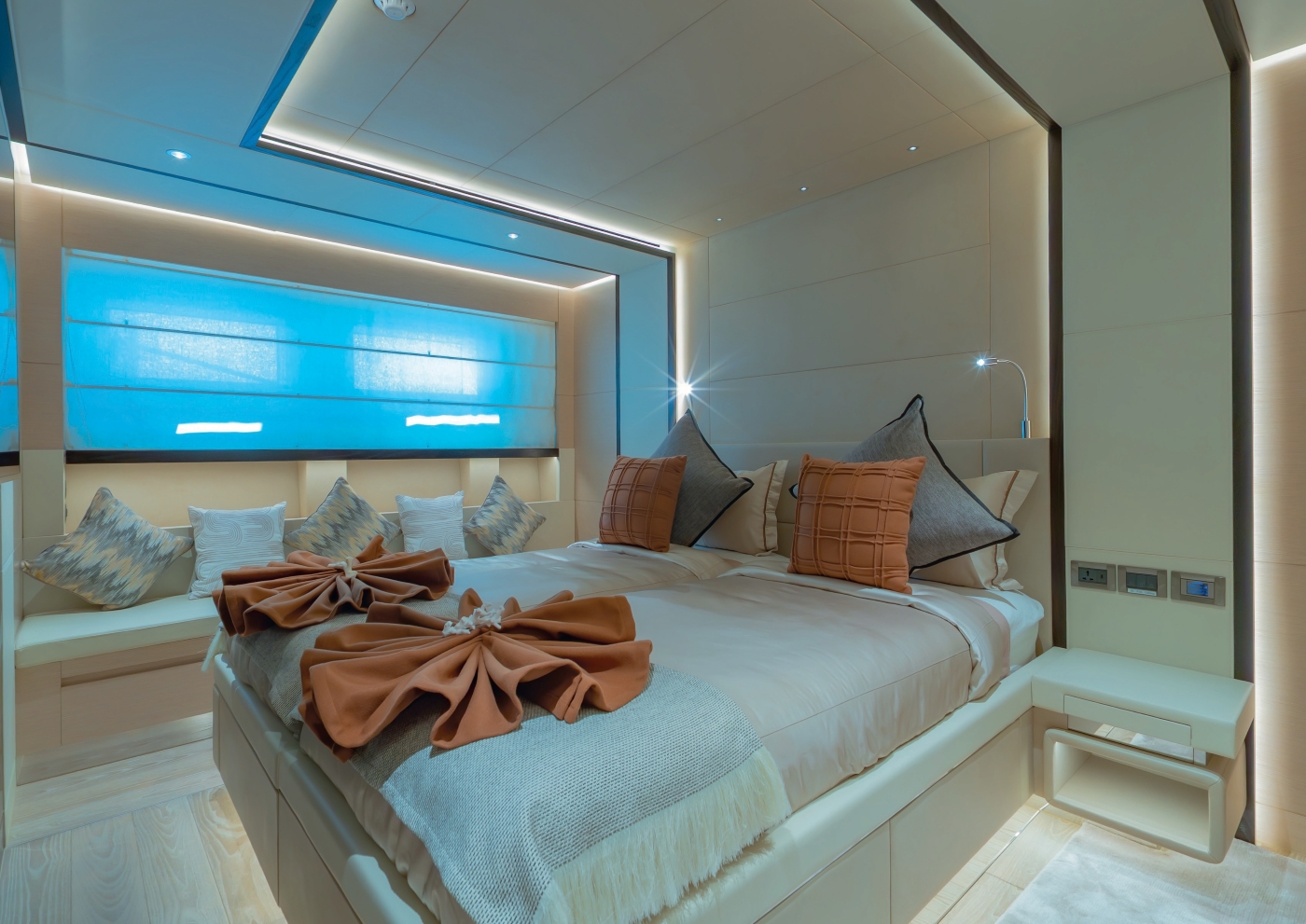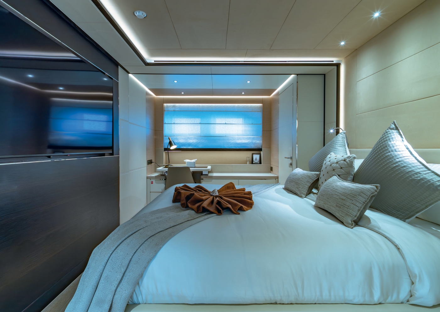 ~ Aft-facing Owner’s suite with private terrace