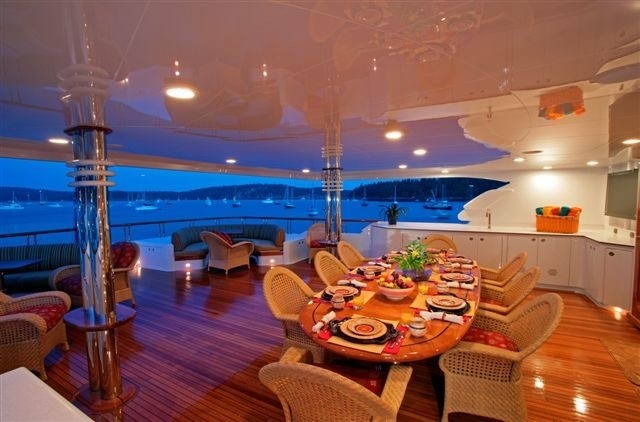The yacht's wider design collaboration came from Setzer Design Group and Stuart Archer. The technical naval architect intellectual property are a work of Setzer Design Group. Motor Yacht SORCHA received her elegant interior designing from the interior design company of Setzer Design Group. Built at Northern Marine the yacht was built in the yacht producing country of the United States. She was successfully launched in Anacortes Wa in 2005 before being handed over to the owner. Her hull was constructed with composite. The motor yacht main superstructure is made for the most part with composite. With a beam of 8.7 m / 28.5 feet SORCHA has spacious size. A reasonably shallow draught of 2.23m (7.3ft) determines the amount of ports she can berth in, contingent on their particular depth at low tide.