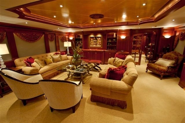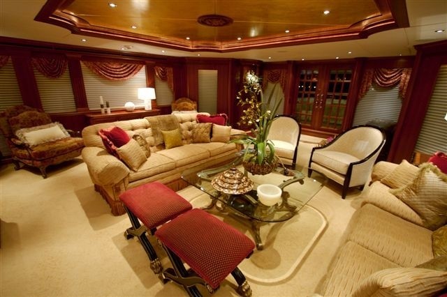 She is powered with two agile CATERPILLAR diesel engine(s) and can drive at a comparatively good max speed underway of approximately 16 knots. The main engine of the yacht generates 1200 horse power (or 883 kilowatts). Her total HP is 2400 HP and her total Kilowatts are 1766. Her propulsion units are twin screw propellers.