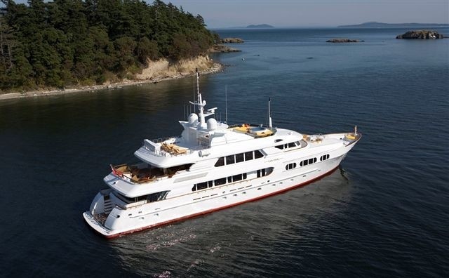 Motor yacht Sorcha is a resin infused composite superyacht as designed by the famed naval architect Ward Setzer and built by the legendary craftsmen in the Pacific Northwest. The superyacht merges contemporary and classic design. She is constructed with a full displacement hull and wide 29'5" beam that allows for an 8' draft. Her 15,235 gallon fuel capacity enables a range of over 4,000 nautical miles. Her twin 3512B Caterpillar diesels engines push her at a 10 knots cruise speed. M/Y Sorcha's composite construction provides significant weight, structural, insulating and acoustical advantages when compared to other yacht building materials like metal.
