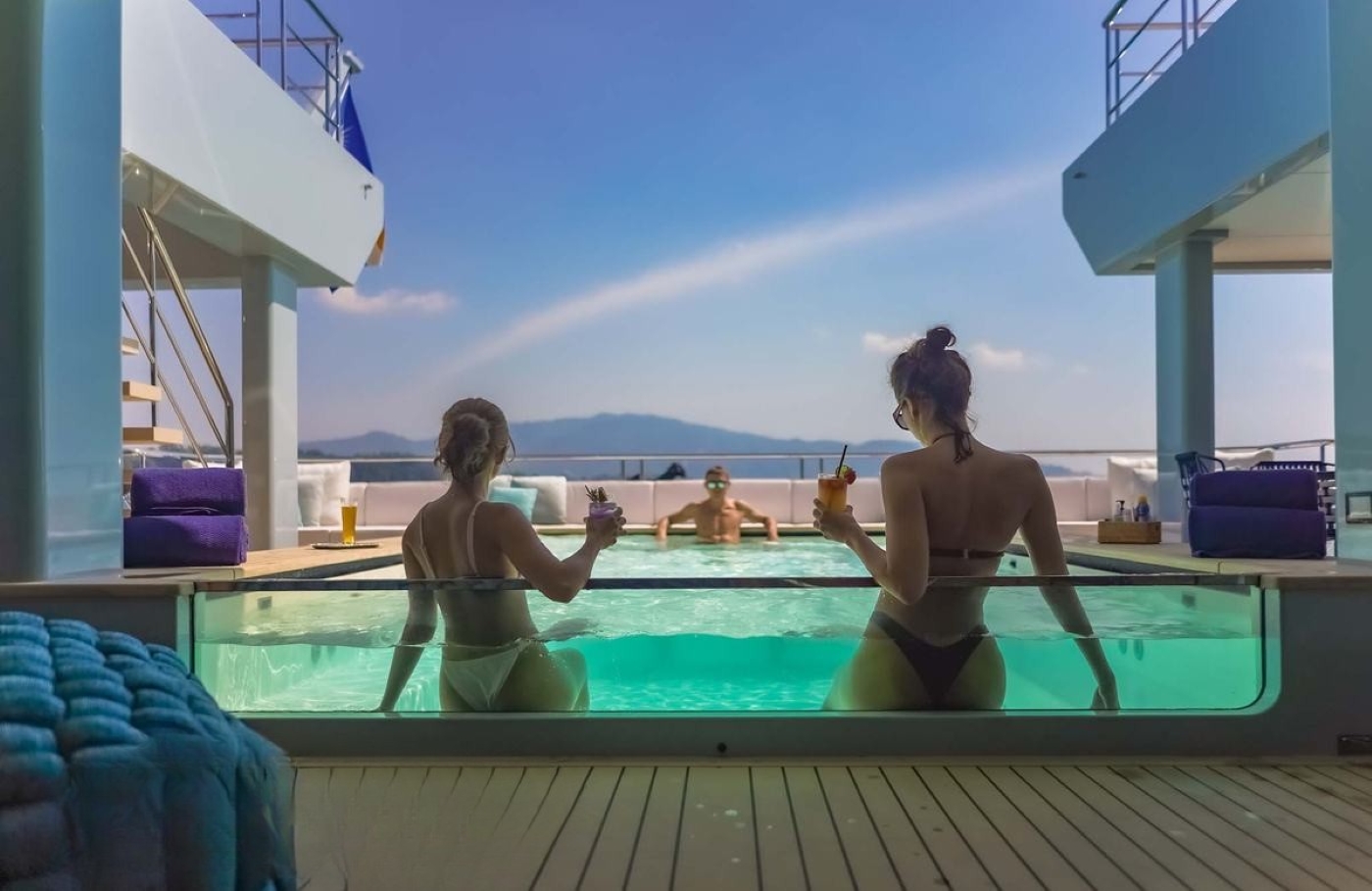 Tender & Toys 1x 21’ (6.25m) Williams Tender with 170hp Diesel jet 18' (5.5m) x 9' (2.8m) pool on main deck 2x Jetskis (Seadoo GTX and Seadoo Wake) 2x Seabobs (1x F5 and 1x F5 SR) 1x e-Foil board 2x wakeboards 2x standup paddleboards 1x towable inflatable donut Snorkeling gear Pool toys and games Gym equipment: yoga mats, kettle bells, skipping ropes, resistance bands