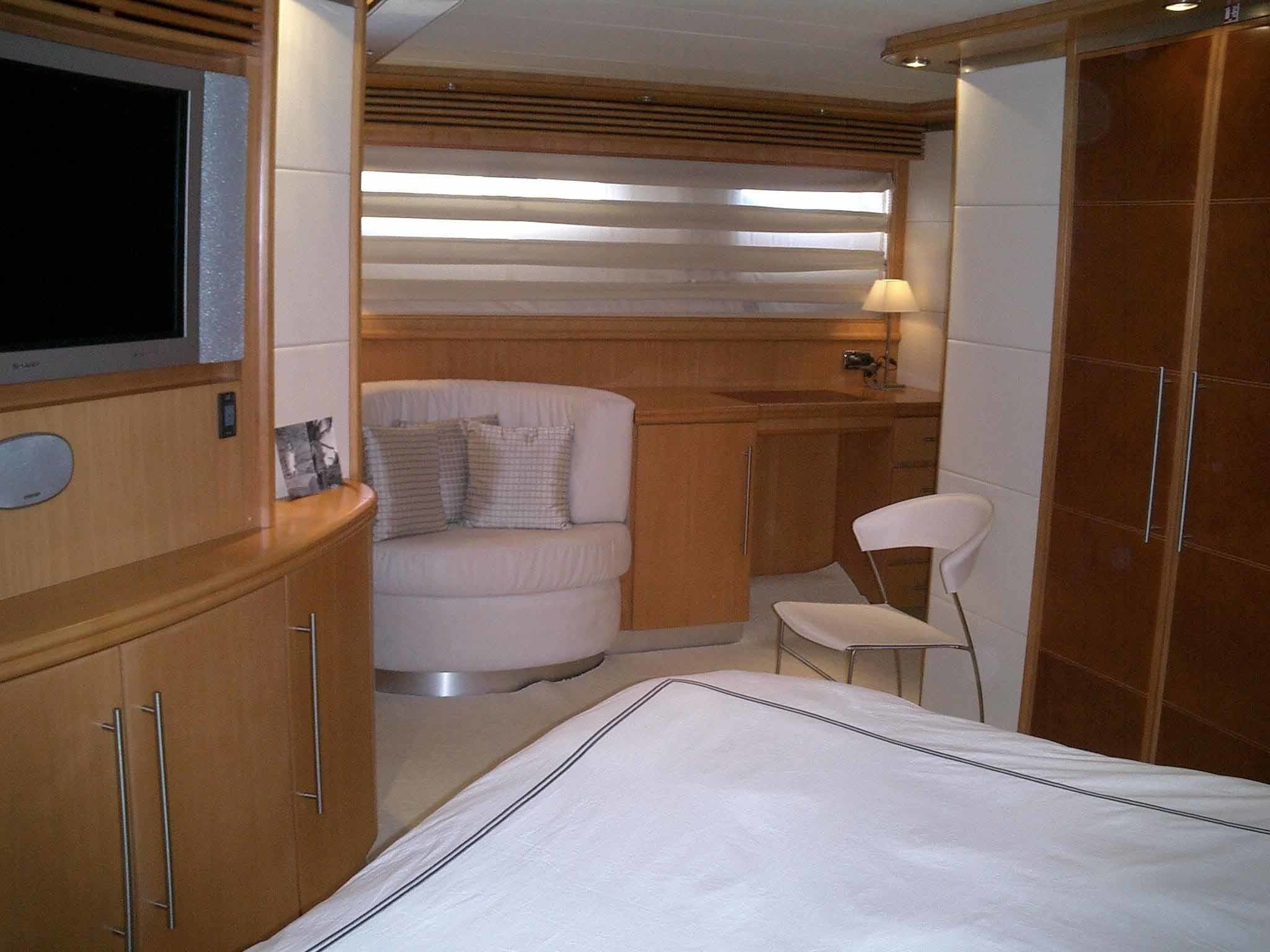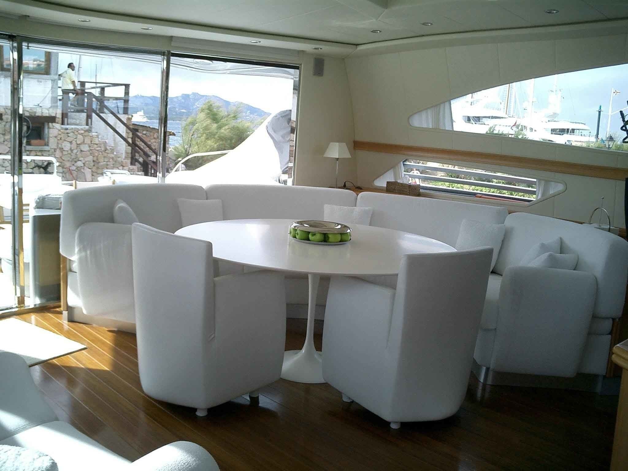 She sleeps 8/9 guests in 4 well-appointed cabins. A cleverly arranged owner’s stateroom with a double bed occupier the full beam amidships, the VIP stateroom has a double bed while the two guest cabins each feature twin beds: all with their own private shower rooms.