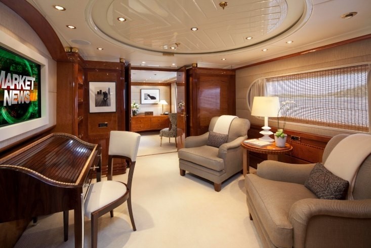 This boat for its propulsion uses twin efficient DEUTZ-MWM diesel engine(s) and can reach a industrious continuous speed of approximately 18 knots. The engine of the yacht creates 1573 horse power (or 1170 kilowatts). Her total HP is 3146 HP and her total Kilowatts are 2340. Coupled to the STARFIRE engines are twin screw propellers. With respect to the ship’s stabalisers she was built with Vosper. For bow thruster maneuverability she uses Vosper. STARFIRE has a/an efficacious cruising speed is 15 knots which makes a range of 7500.