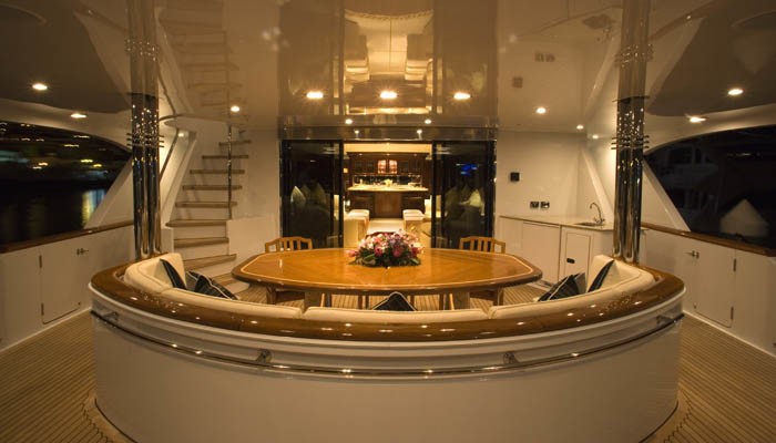 Setzer Design Group was the naval architecture company involved in the technical superyacht plans for SUNCHASER. Her interior design was conceived by Pavlik Yacht Design. Setzer Design Group is also associated with the yacht general design work for this boat. In 2006 she was actually launched to triumph in Richmond Bc and post sea trials and detailing was then delivered to the yacht owner. Richmond Yachts completed their new build motor yacht in Canada. The hull was constructed with composite. The motor yacht superstructure component is made predominantly with composite. With a beam of 8.53 metres or 28 ft SUNCHASER has fairly large size. A fairly shallow draught of 2.2m (7.22ft) affects the number of marinas she can enter, depending on their individual characteristics.