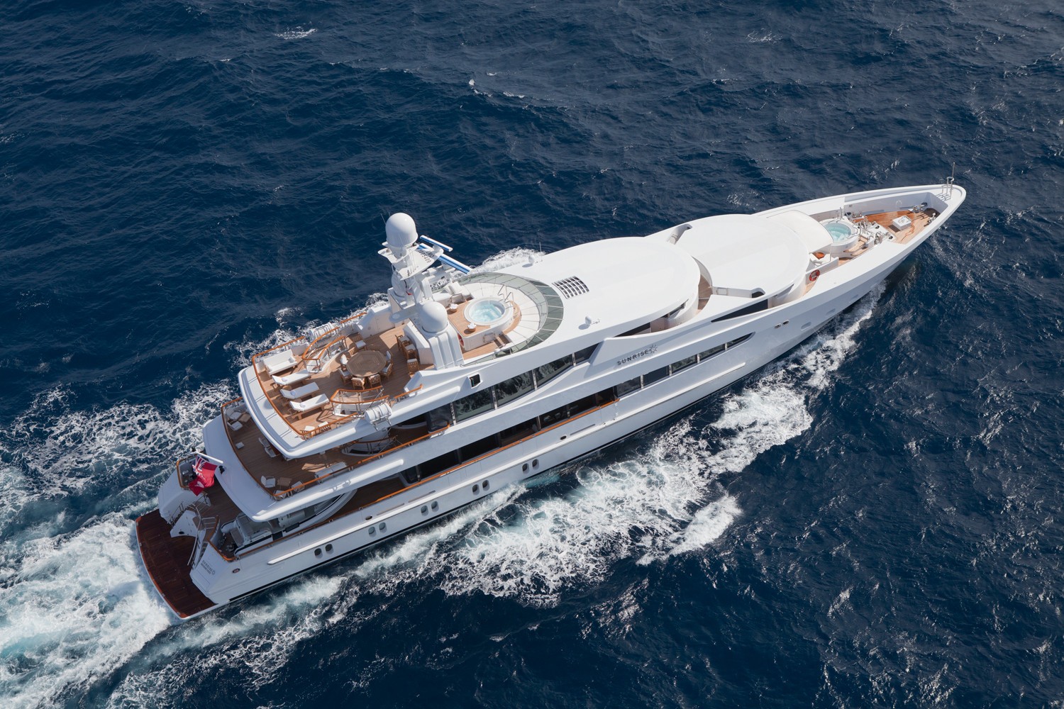 The luxury yacht SUNRISE displayed on this page is merely informational and she is not necessarily available for yacht charter or for sale, nor is she represented or marketed in anyway by CharterWorld. This web page and the superyacht information contained herein is not contractual. All yacht specifications and informations are displayed in good faith but CharterWorld does not warrant or assume any legal liability or responsibility for the current accuracy, completeness, validity, or usefulness of any superyacht information and/or images displayed. All boat information is subject to change without prior notice and may not be current.