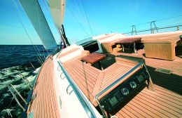 The interior designers have created a spacious and functional living area laced with typical Swan elegance. Her raised saloon is stylish and very practical. Her woodwork is teak wood with hand rubbed satin finish. Expert craftsman have taken care of every detail to make your charter as pleasant and safe as possible.