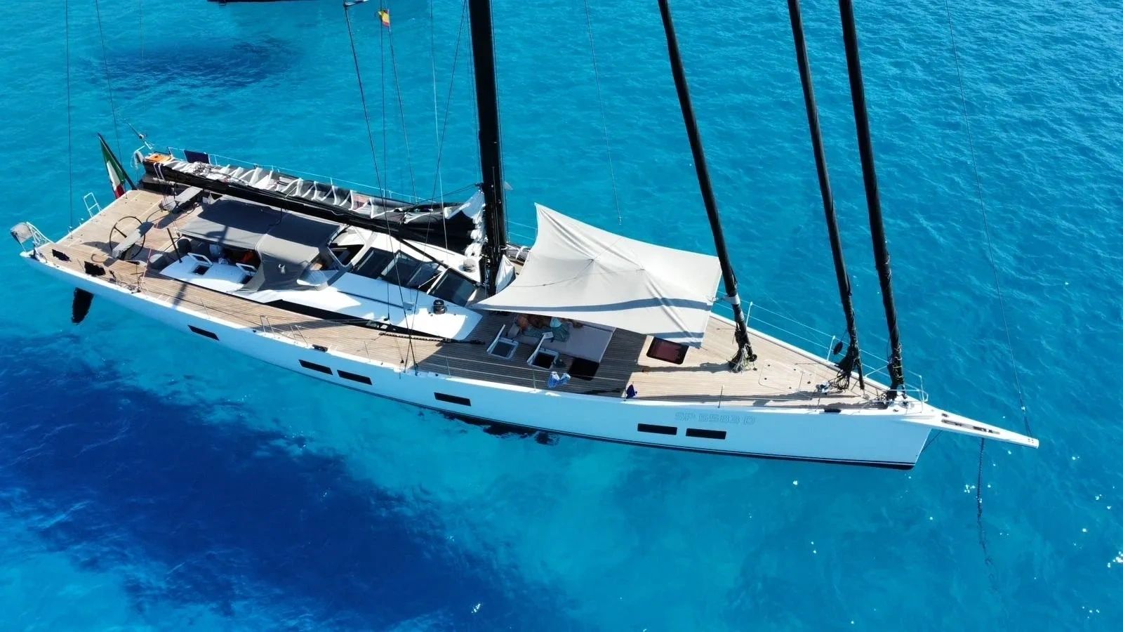 ~Full carbon construction for enhanced performance and lightness ~2024 refit with fresh interior finish ~Three double guest cabins ~Air conditioning ~WiFi ~Wakeboard and two inflatable SUPs ~Aermarine tender with Yamaha engine