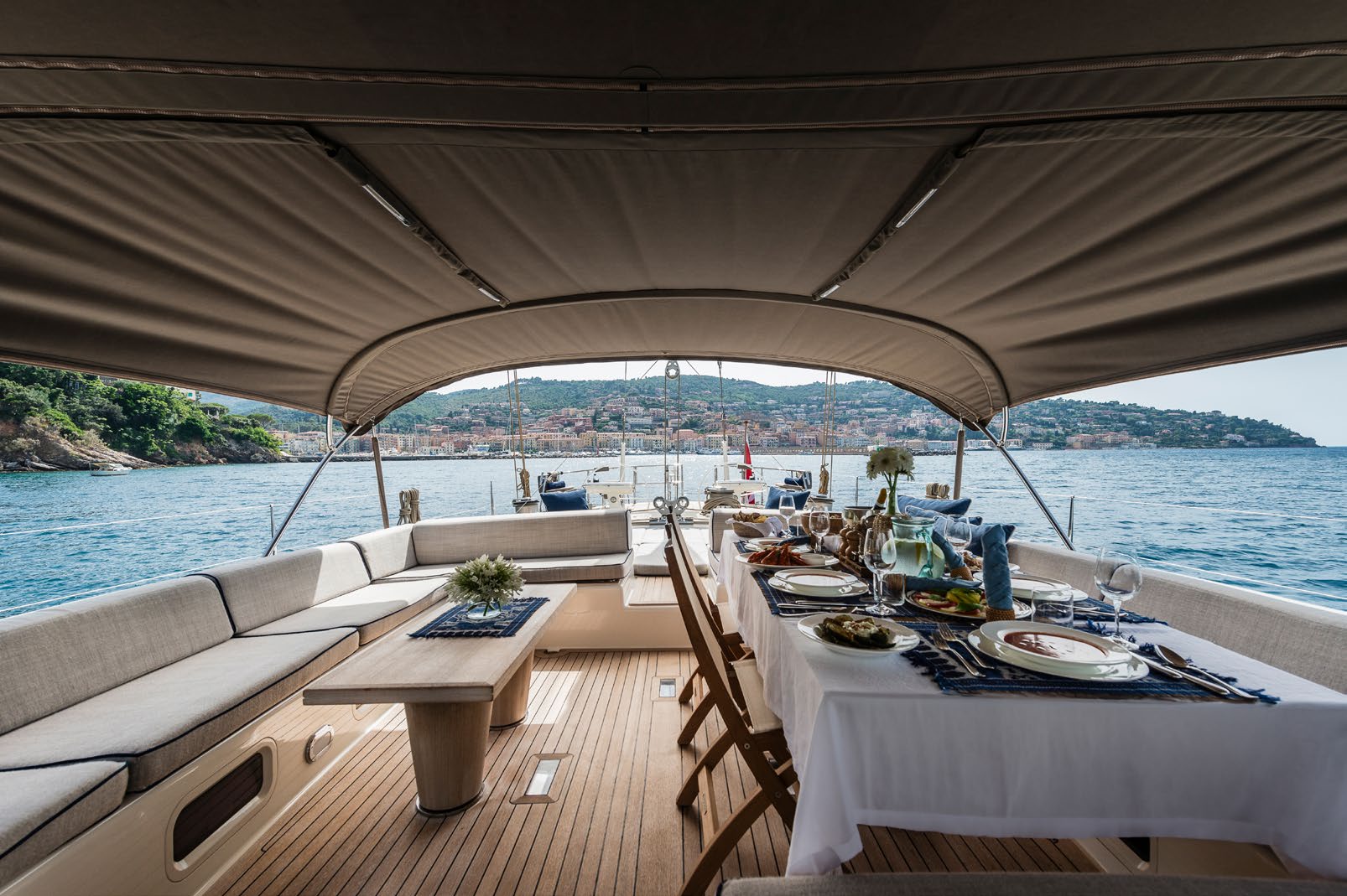 The yacht delivers a fantastic sailing experience with easy manoeuvrability with compromising guest comfort. Performance comes from a 424sqm sail plan by Farr Yacht Design.
