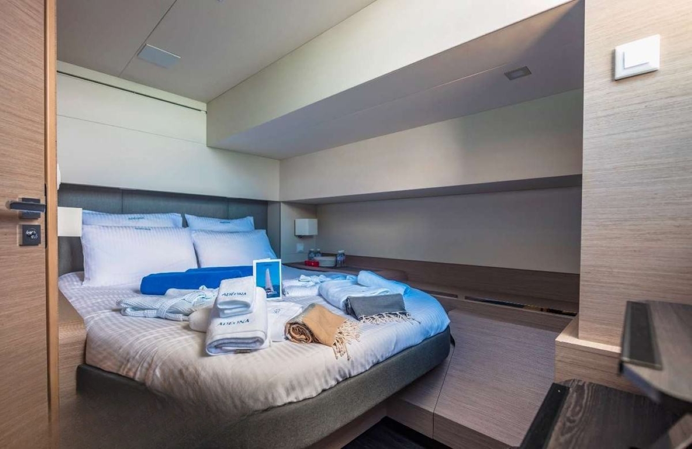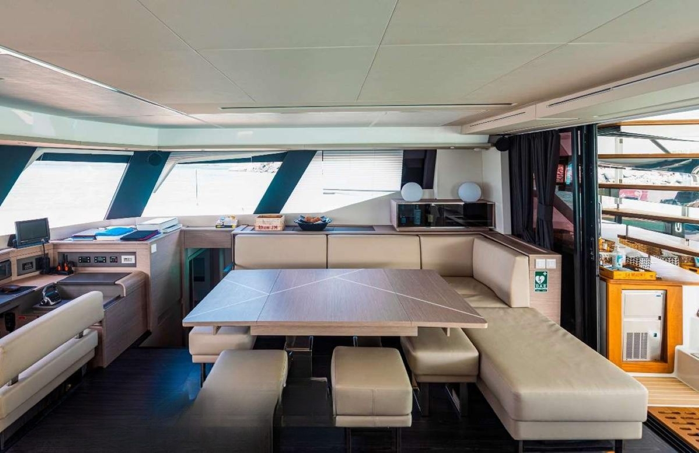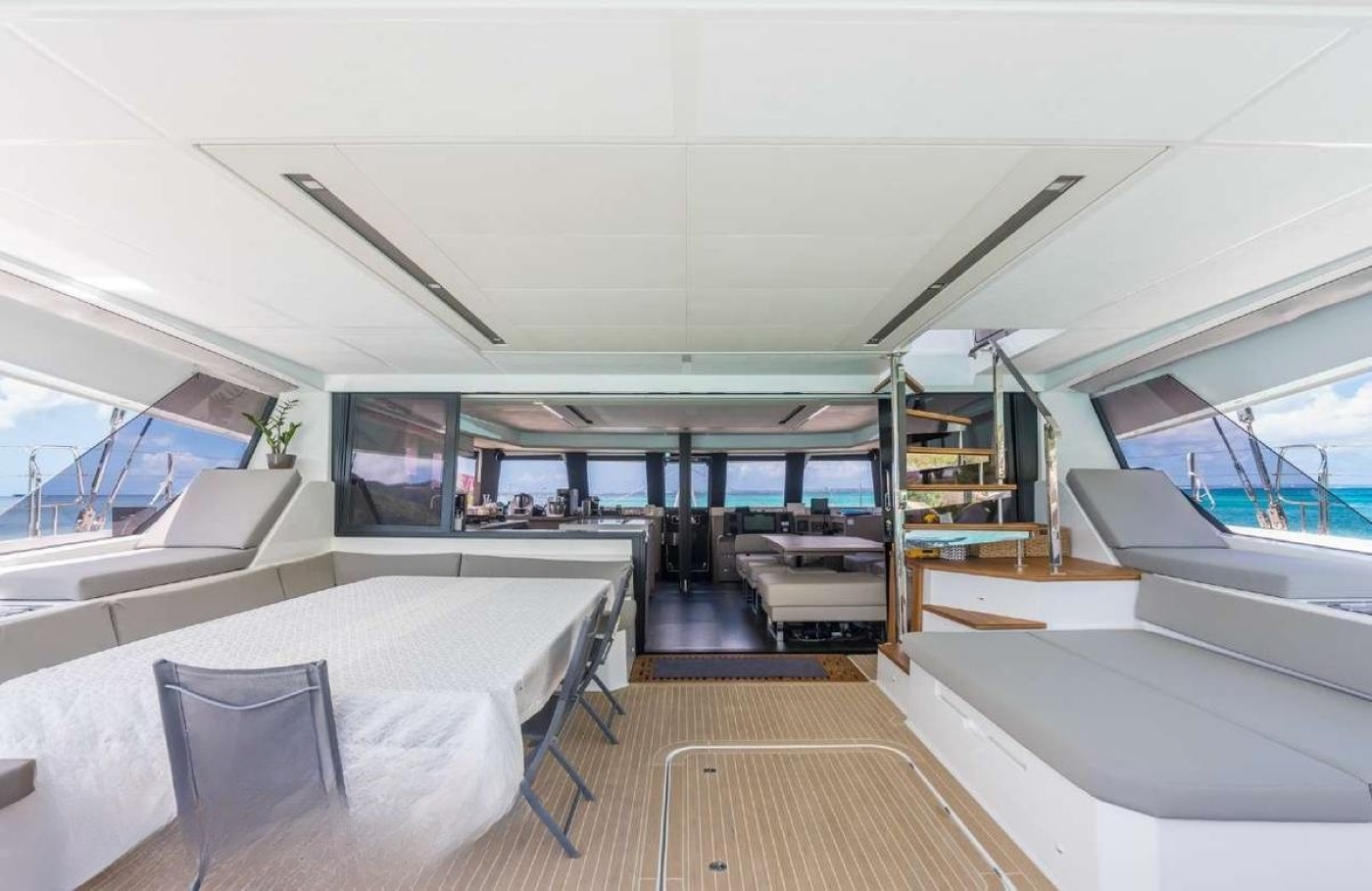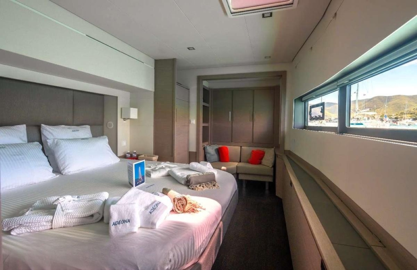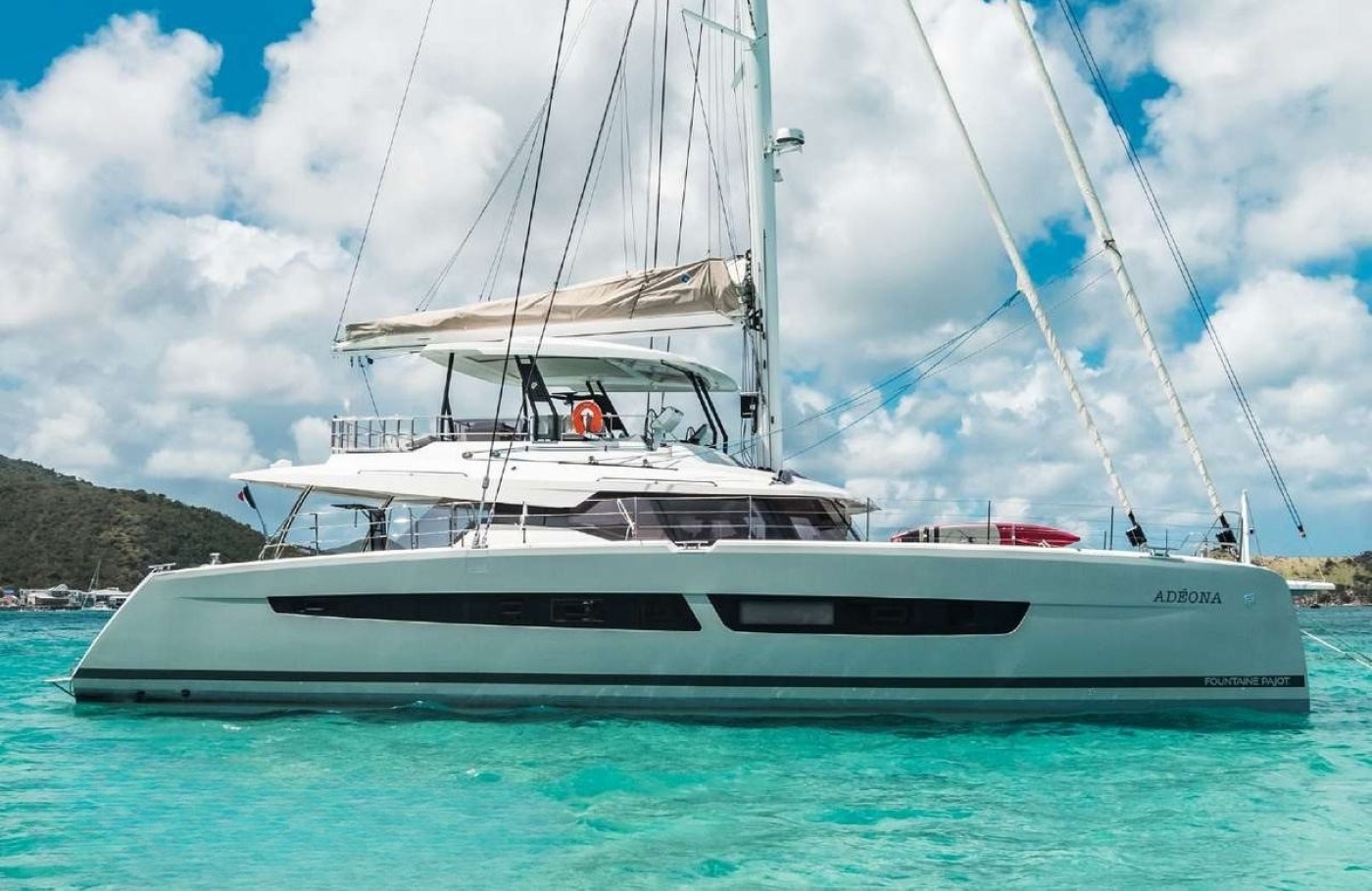 Sailing yacht ADEONA is a 49.49 m (63'11") Fountaine Pajot flybridge catamaran built in by the French shipyard in 2021. With sociable deck spaces, foredeck jacuzzi and a generous interior, she makes the ideal choice for charter and accommodates eight guests in four cabins.