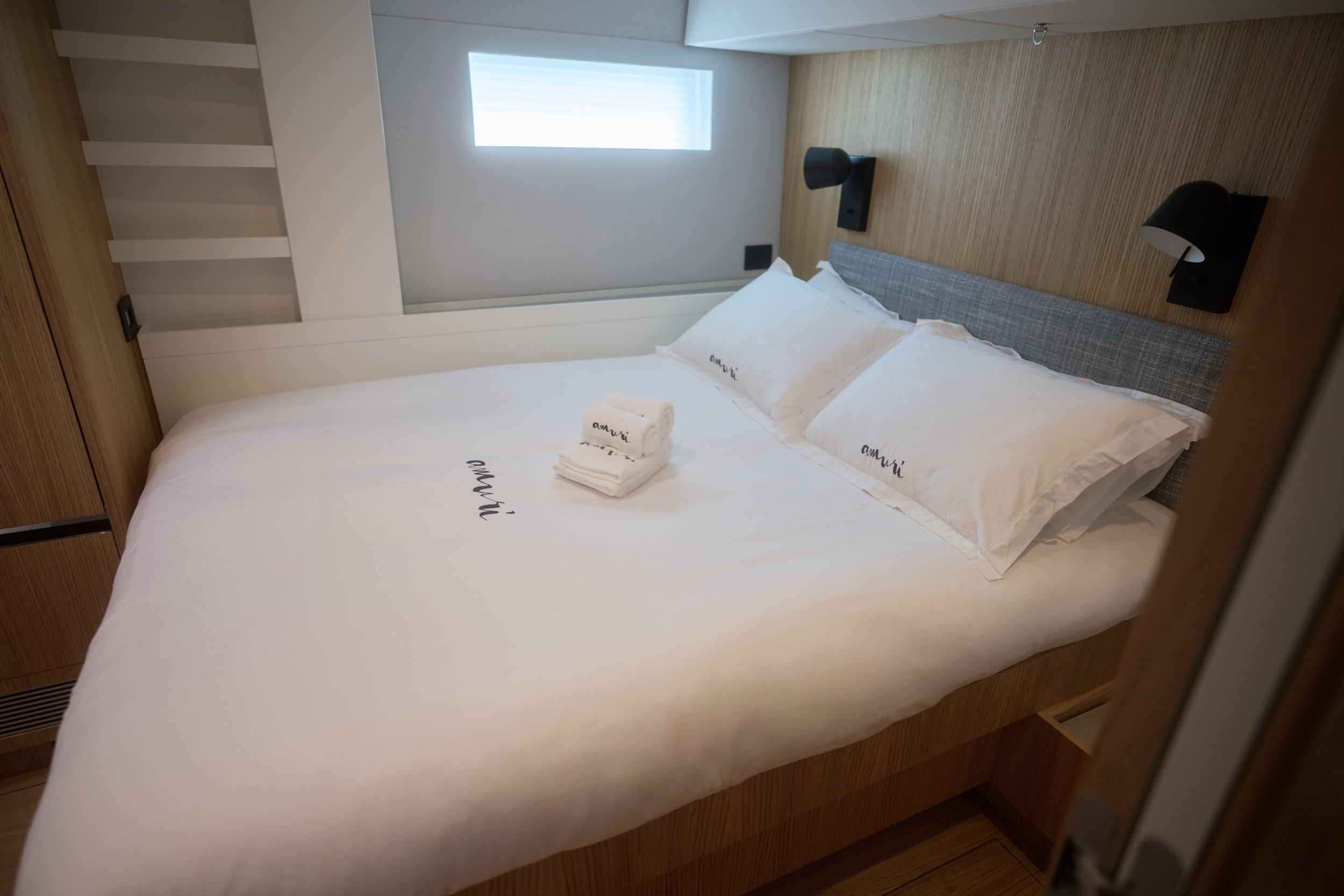 NOTABLE FEATURES OF AMURI: ~Sociable cockpit seating area ~Light and modern interior ~Water toys ~Swim platform ~Air conditioning ~WiFi