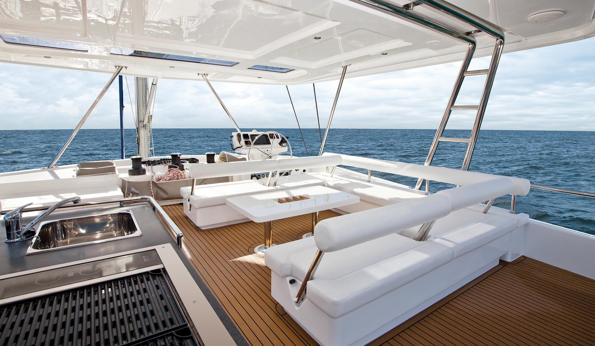 The large open aft cockpit and forward deck provide ample space for al fresco dining and lounging. A hydraulic swim platform at the stern gives additional space for enjoying the water toys or jumping into the water. The whole deck is covered with Flexiteak deck, a lightweight, high impact, simulated teak.