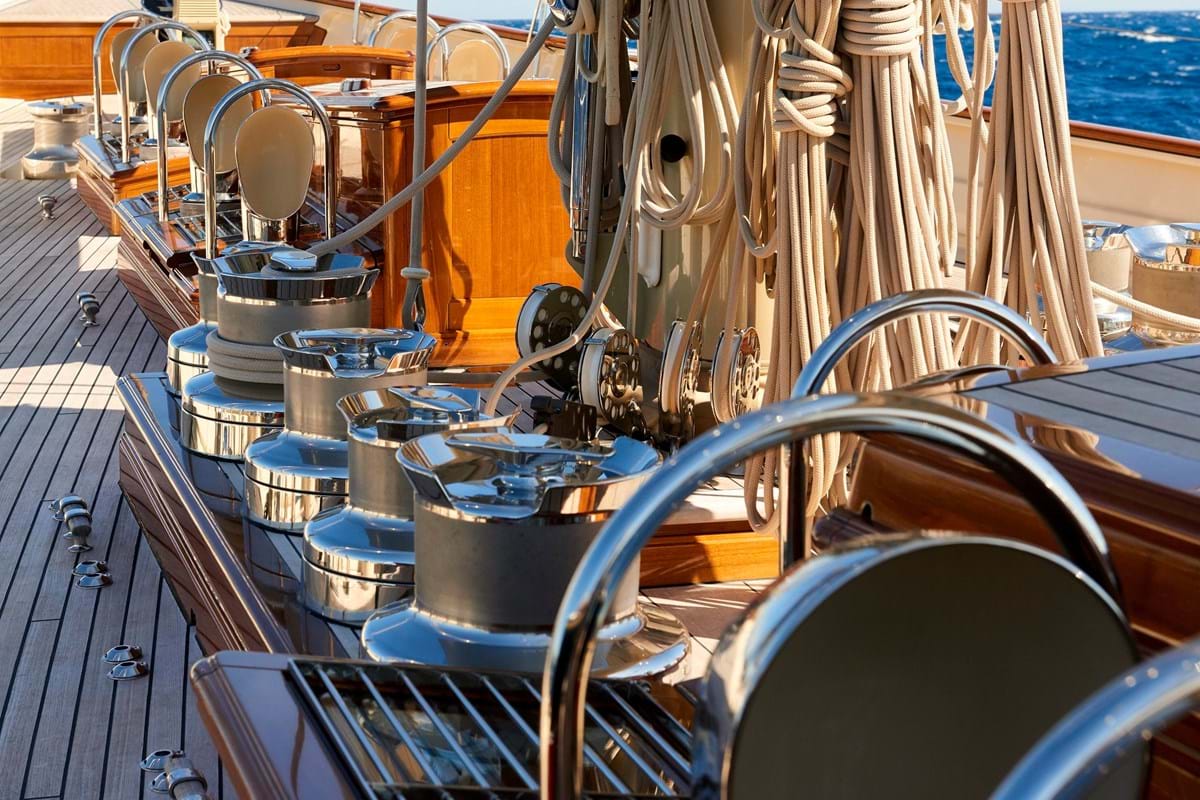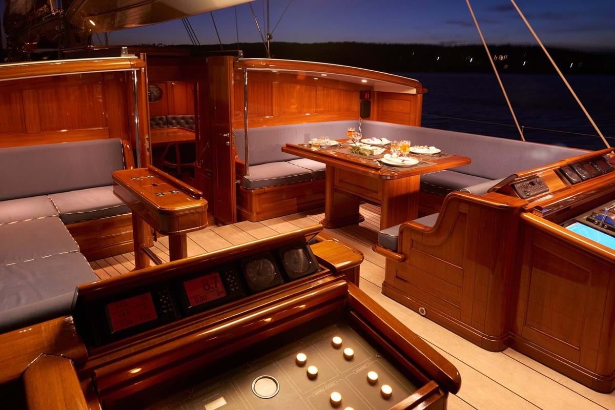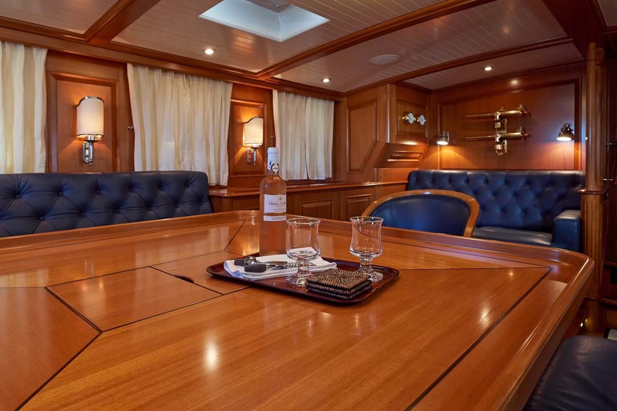 Above deck, guests can dine alfresco in the sunshine while enjoying the views, or rest on the sunbeds along the stern. The forward deck area has room for even more sunbeds, and the bow can be used for exercise and observation while at anchor.