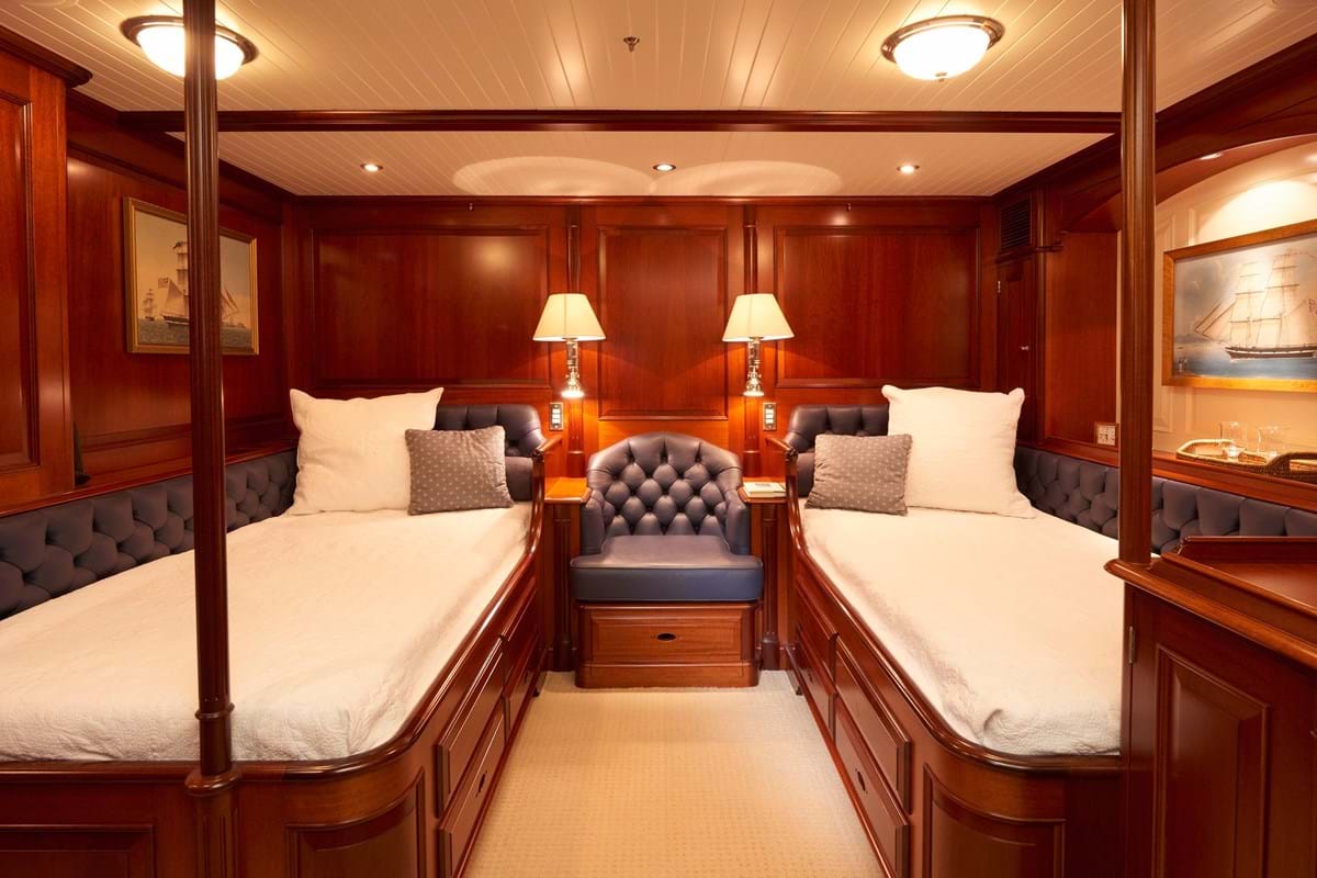 The accommodation sleeps up to 6 guests over 3 cabins: 1 Master suite and 2 twin cabins. ~ The professional crew of 9 will provide first class service and ensure that everything runs smoothly.