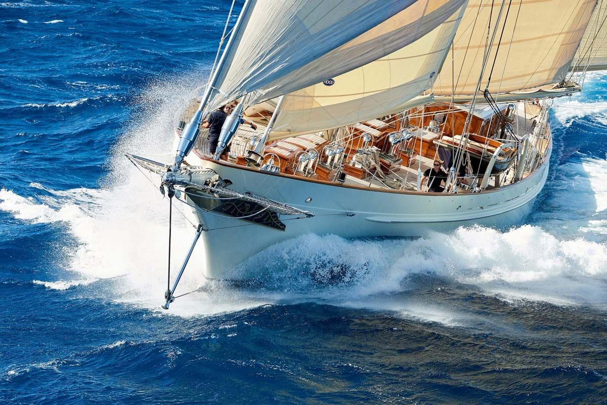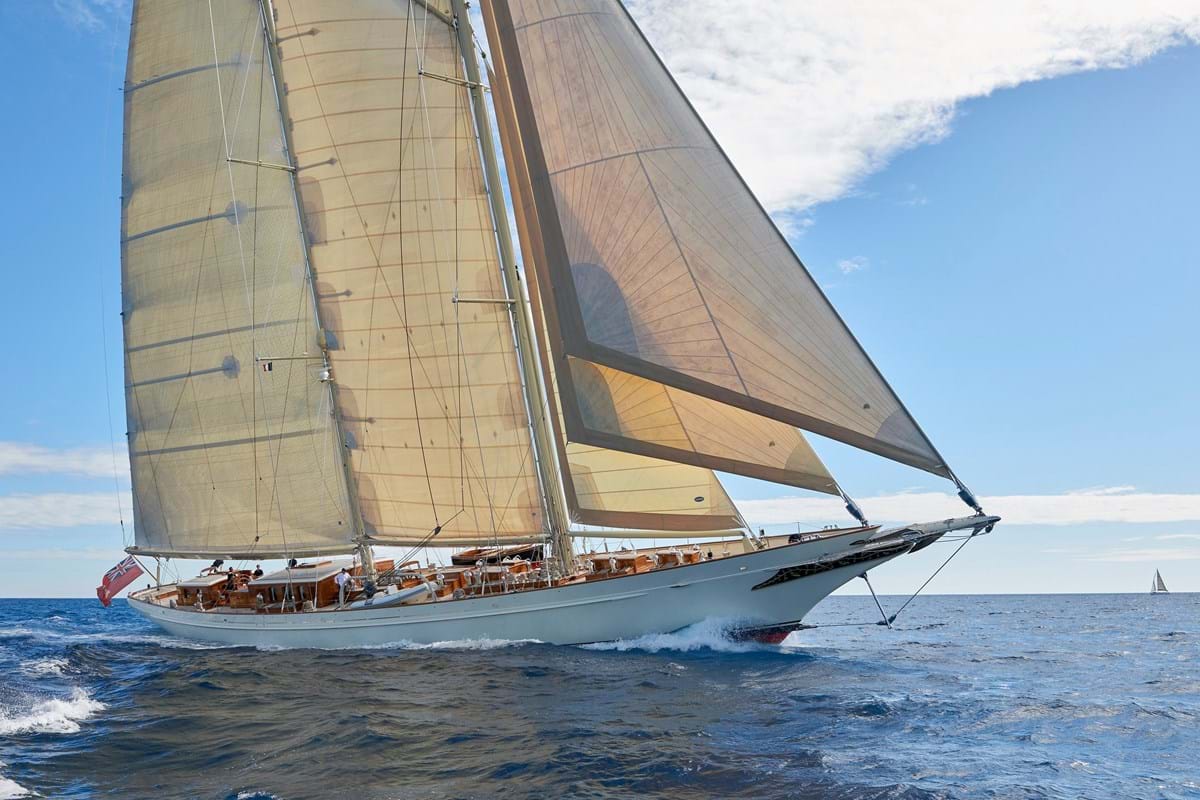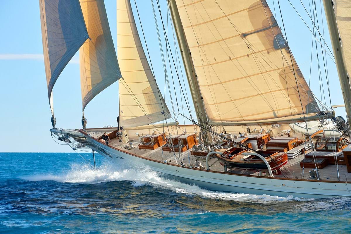 The 50.58m (165'11") luxury sailing yacht BORKUMRIFF IV from renowned Dutch shipbuilders Royal Huisman is a deceptively classic-looking vessel built in 2002 with an aluminium hull and superstructure, giving her the modern day advantages of a shallow draft, greater manoeuvrability and stability for improved comfort while cruising. The naval architecture and exterior styling comes from Dijkstra & Partners and John G. Alden Design, and Dijkstra & Partners. The interiors from John Munford are elegant and timeless, panelled in top quality wood with overstuffed leather creating a 'gentleman's club' environment for socialising and celebrating special events. The accommodation sleeps a maximum of six guests across 3 cabins, with a professional crew of nine to provide a safe and authentic sailing experience.