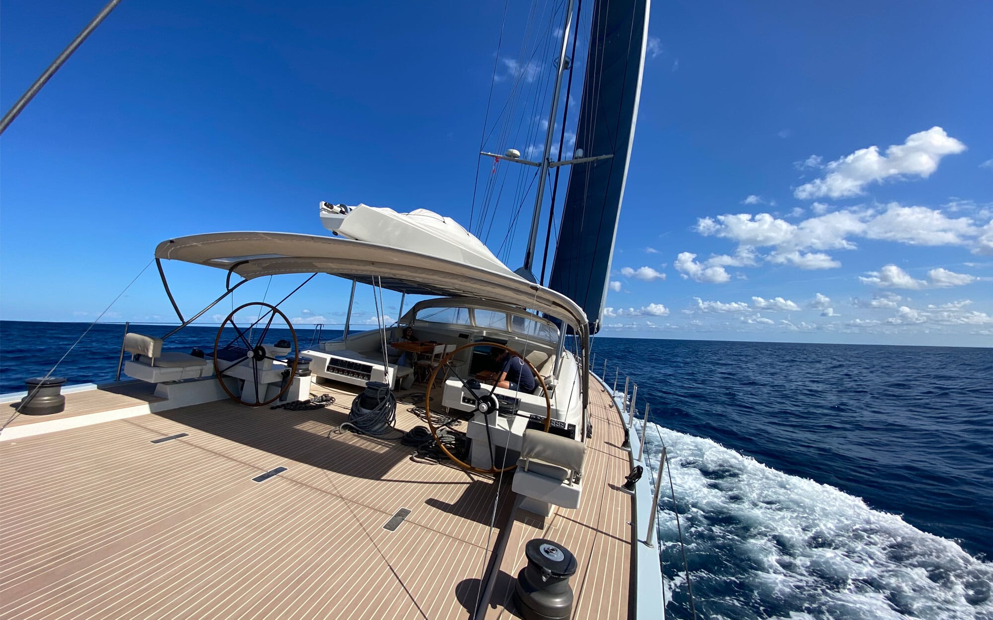 Sailing yacht J SEVEN was designed by naval architect Philipp Briand and built by Cantiere Navale de Bordeaux in 2009 with a length of 26.31m (86' 4"). In 2023 she benefitted from an extensive refit, updating equipment and the interior making it ‘as new’. Six guests can be accommodated in three suites and will be looked after by a three-person crew.