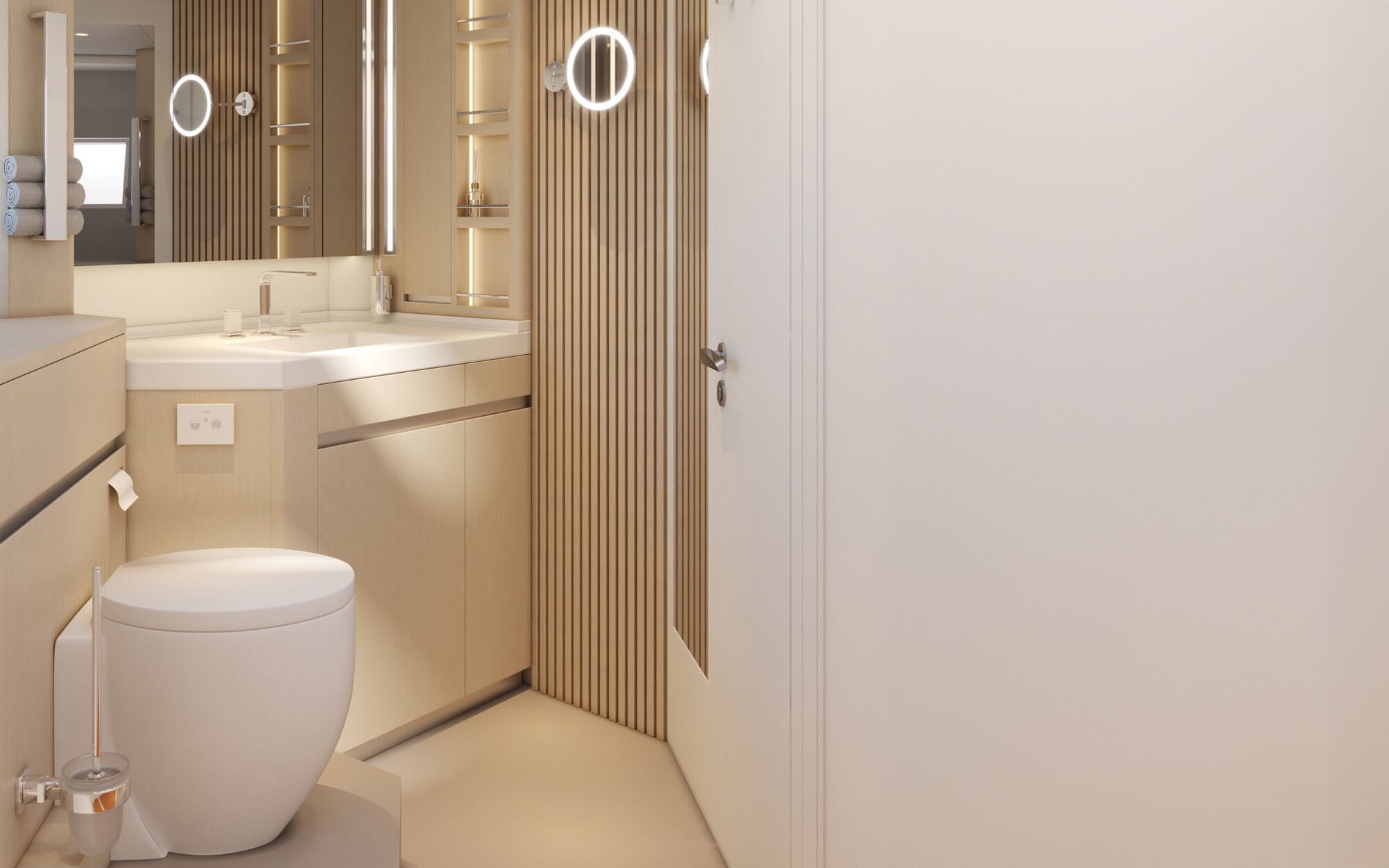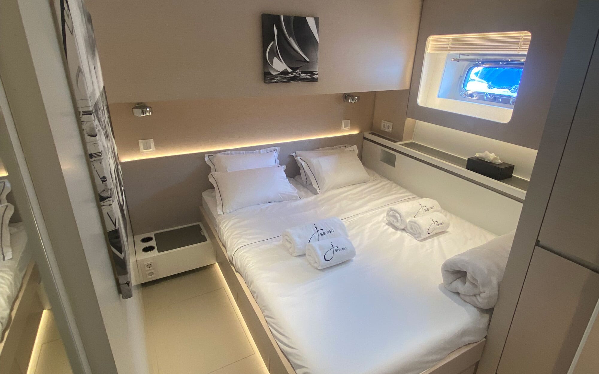 The three contemporary and well-equipped guest suites benefit from a calming neutral décor and are configured as a master and double aft, and a convertible double/twin amidships, all with the luxury and privacy of ensuite bathroom facilities.