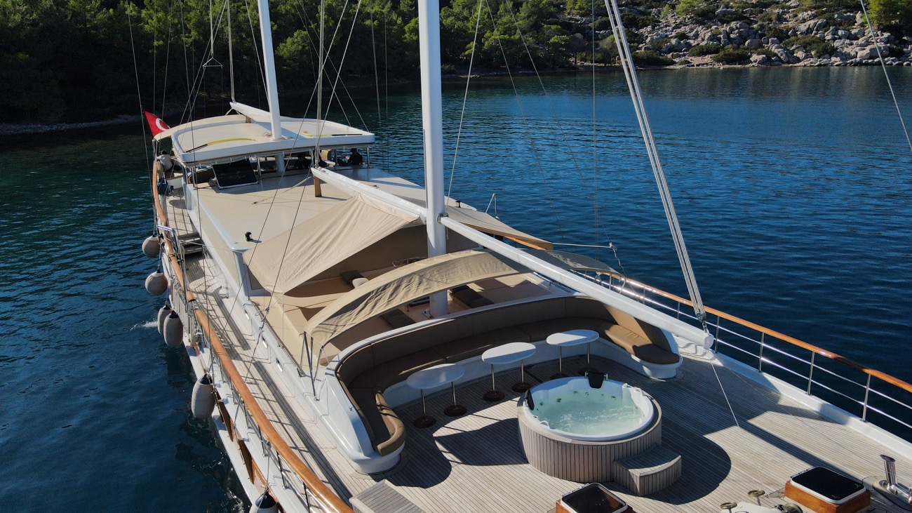 Sailing yacht KOCAOGLAN 1 is a 32.00 m (105') ketch built in 2023 with fabulous deck features and classic interior. She can accommodate up to 12 guests in six ensuite staterooms with additional cabins for the six crew members.