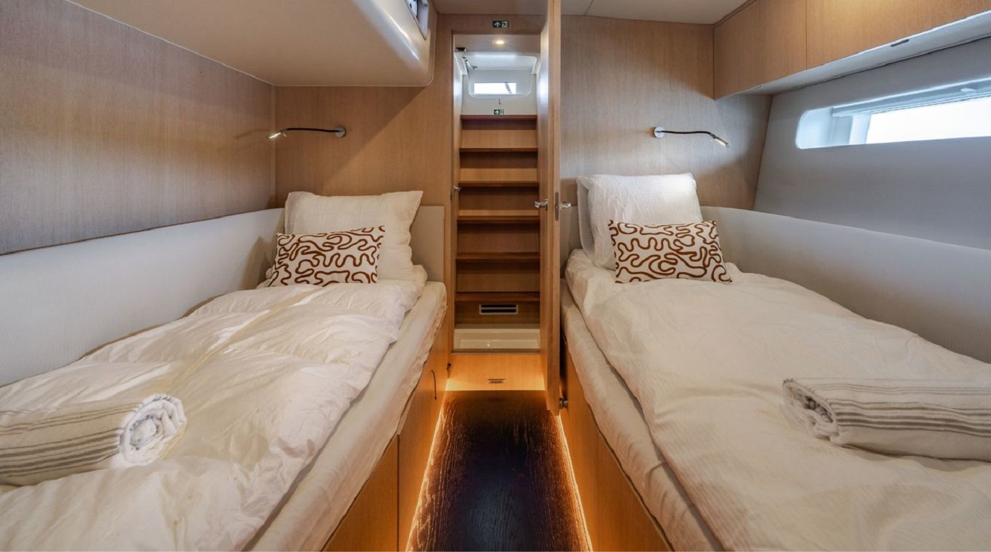 MYSTIC can accommodate 4 guests (max 5 with an additional child) and has 2 crew members. Guests are accommodated in a master cabin and a twin cabin, each equipped with private bathrooms.