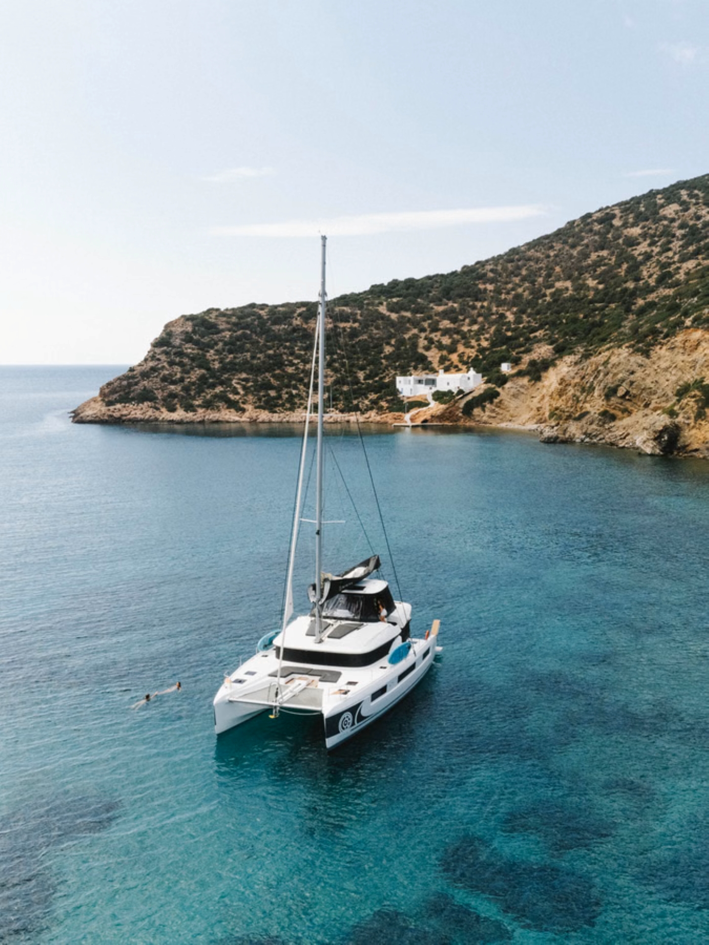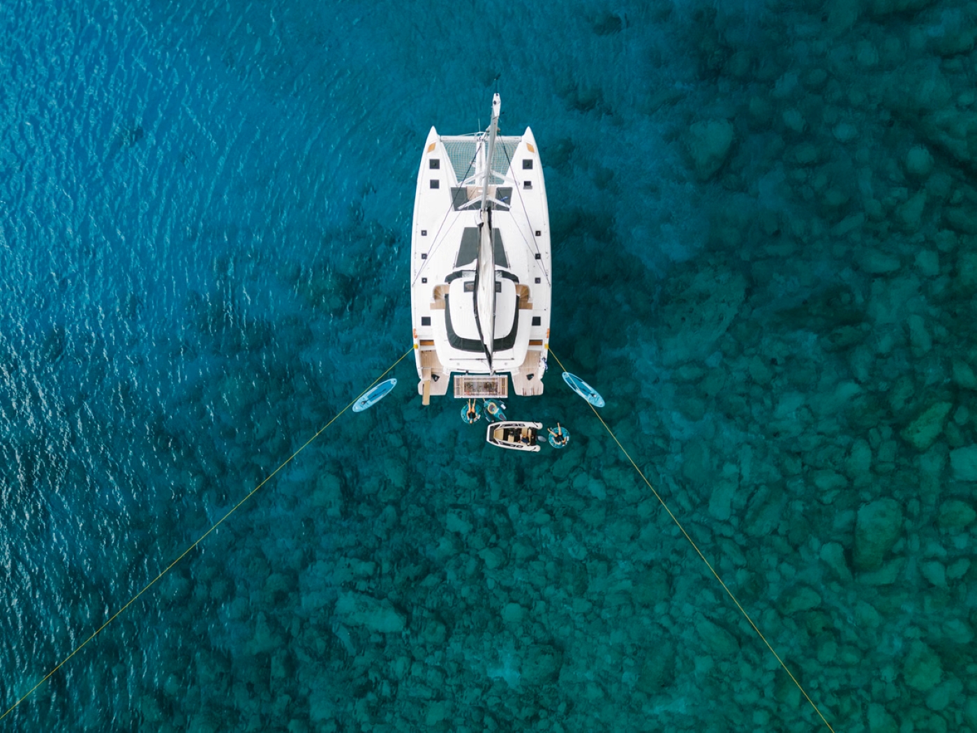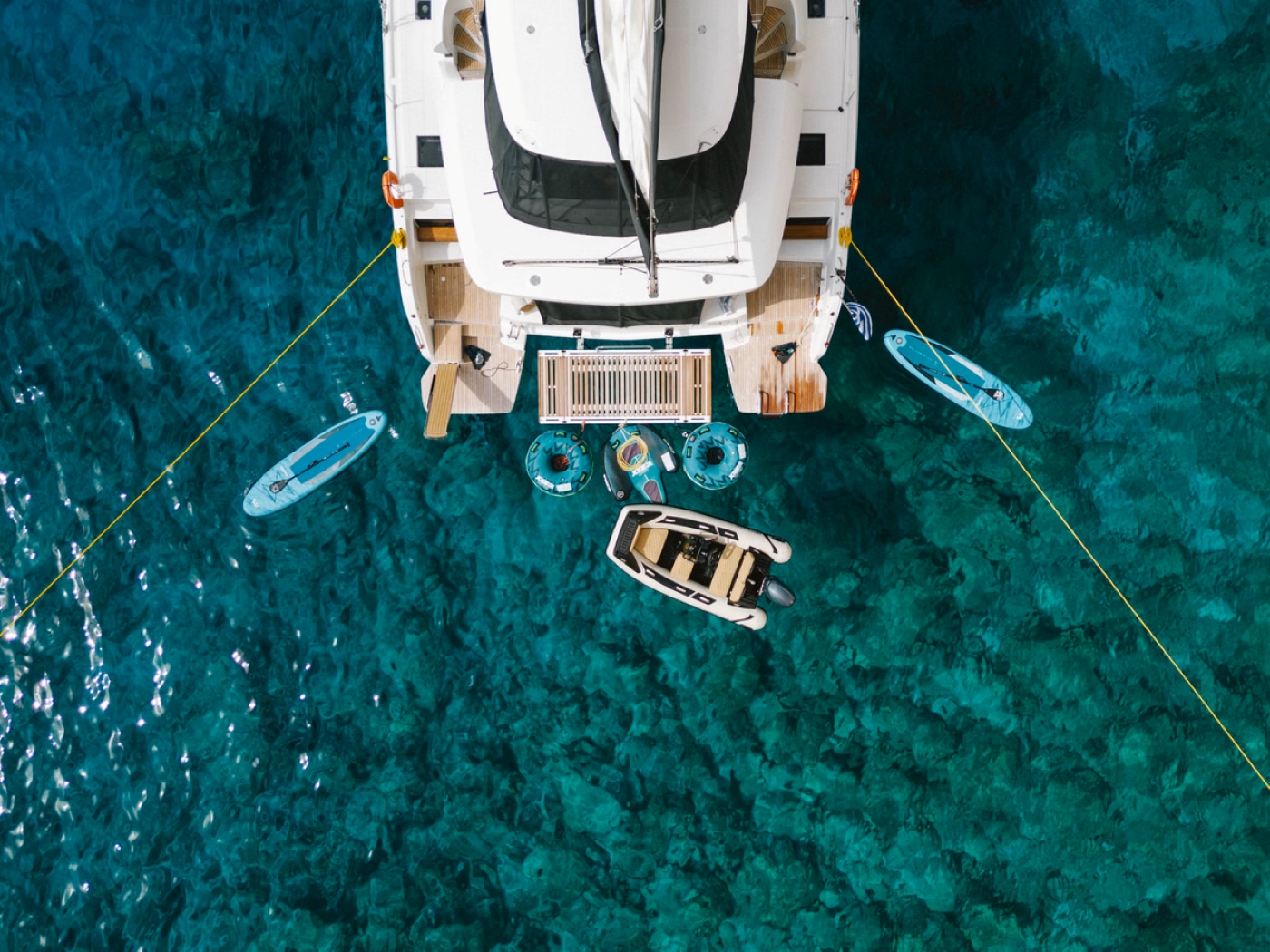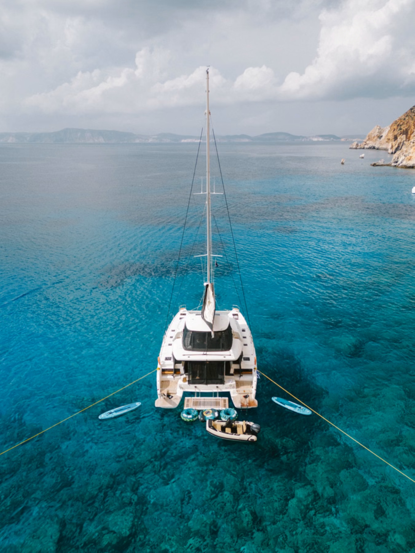 NOTABLE FEATURES OF NAVYA: ~Flybridge catamaran ~Open plan salon ~Great selection of water toys ~Air conditioning ~WiFi