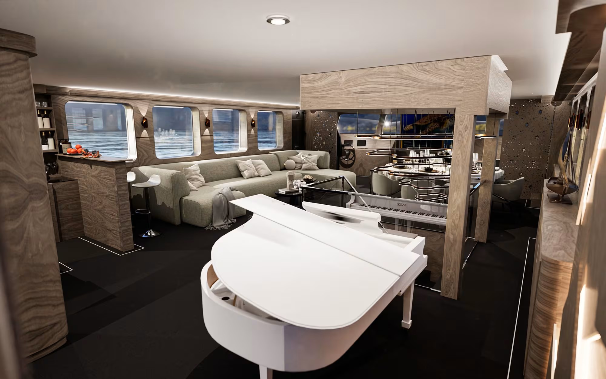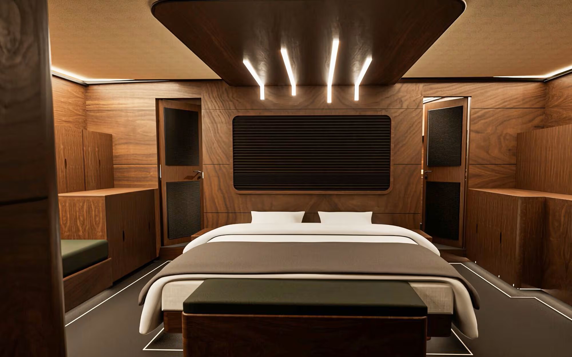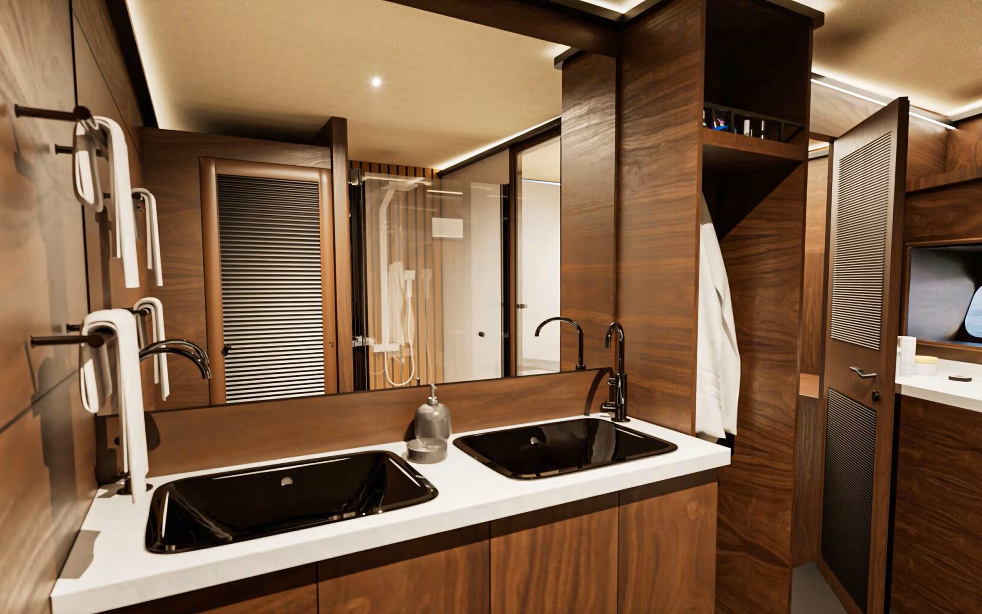 The six guest suites are on the lower deck and can accommodate up to twelve guests in a spacious master suite complete with dressing room, Turkish bath and steam room. Additionally, there are four guest suites with double beds and one twin/convertible guest cabin.