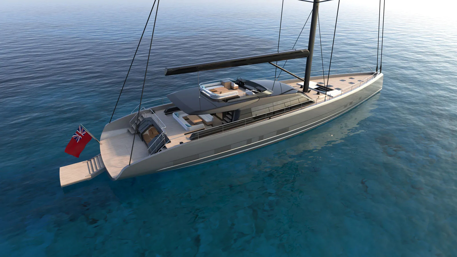 37m sailing super yacht PROJECT FLY from British shipyard Dixon Yacht Design was announced in 2020. This modern concept yacht features hull and superstructure constructed from composite materials including environmentally friendly AmpliTex, which offers the same strength and weight as carbon fibre, but with far less emissions during the manufacturing process. This sleek sailing yacht sleeps eight guests including an owner’s stateroom with direct access to the beach terrace.