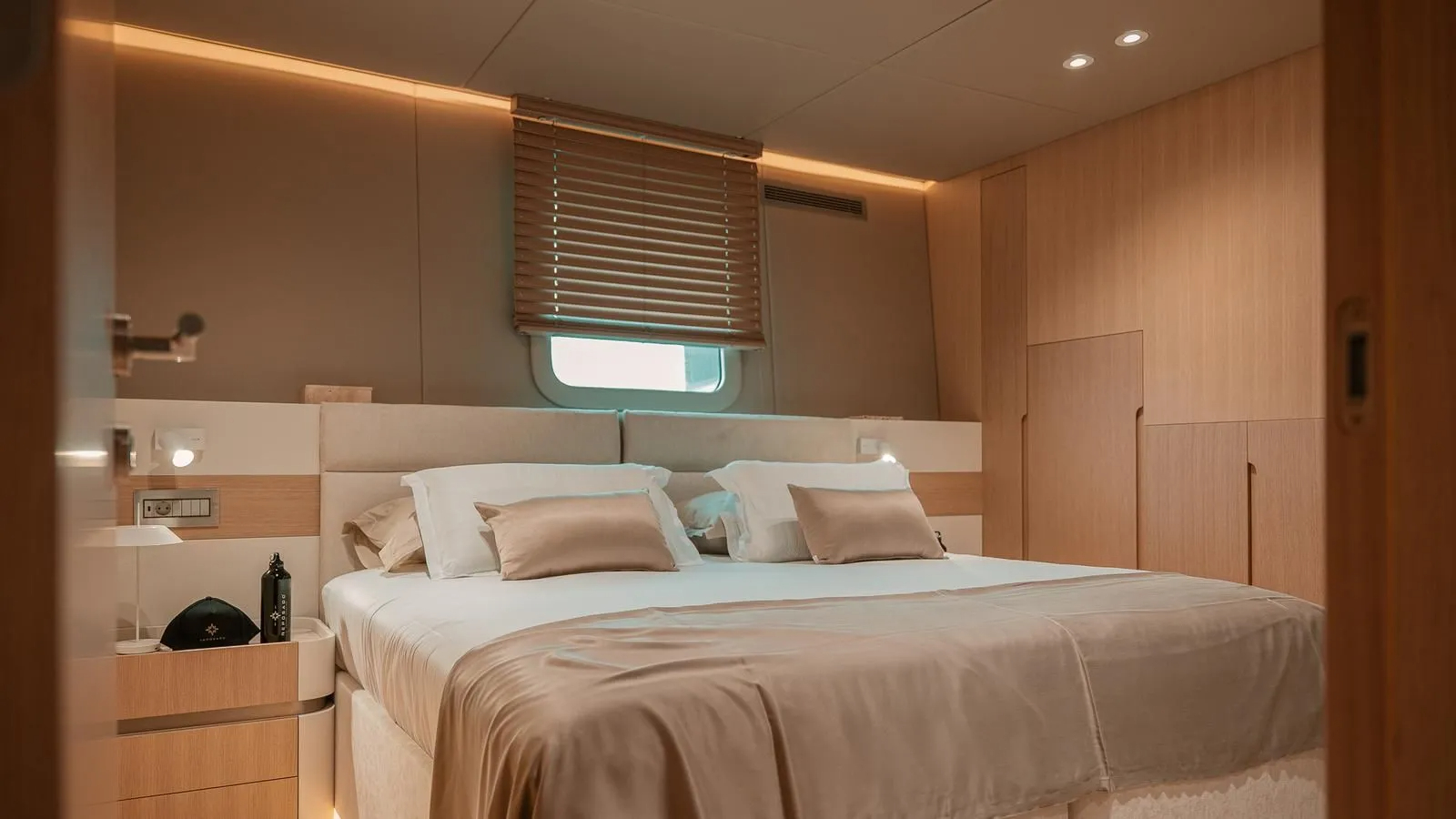 The yacht accommodates 12 guests in 6 luxurious staterooms, including a full-beam Master, full-beam VIP and four spacious convertible Double/Twin staterooms.