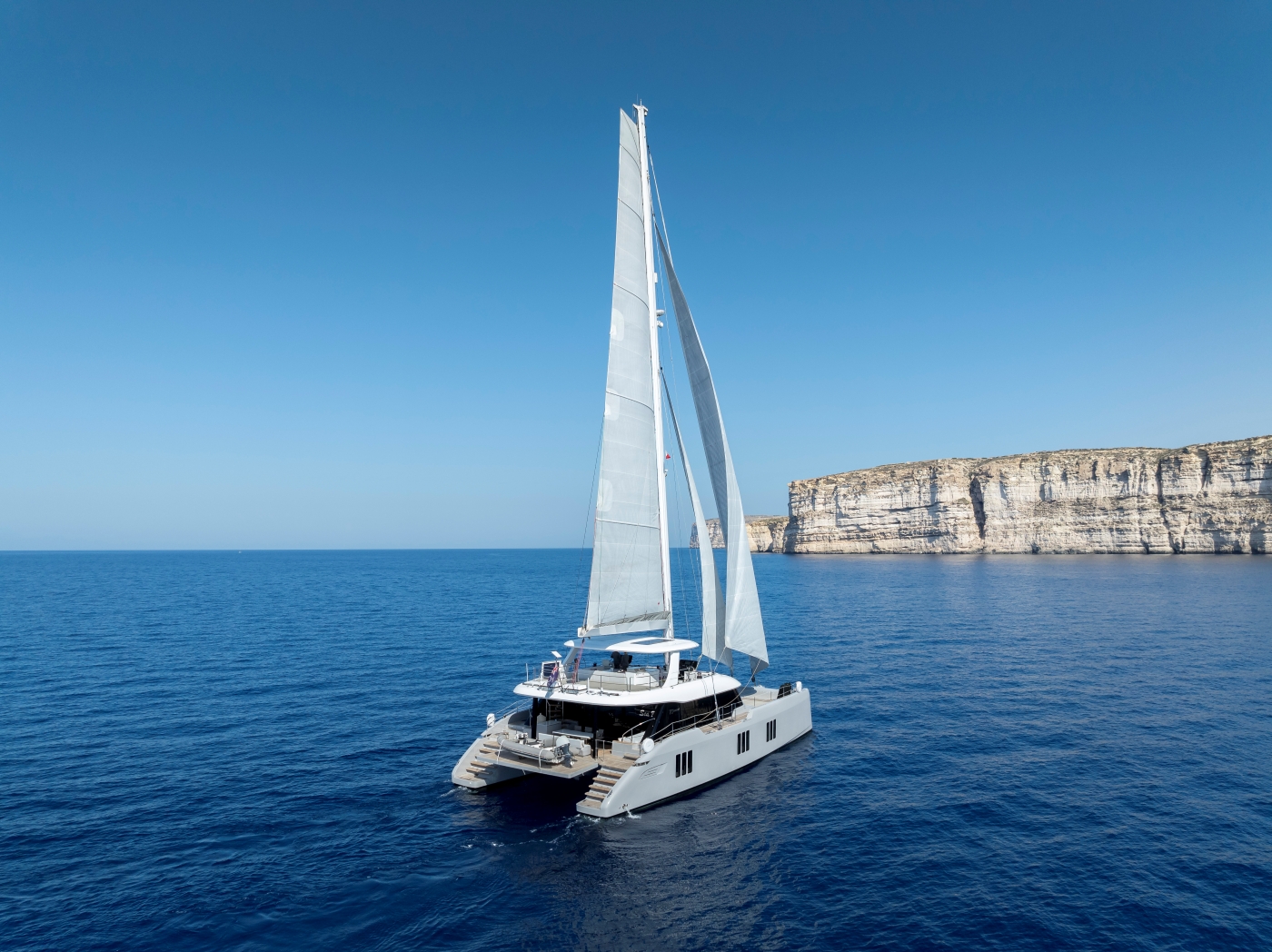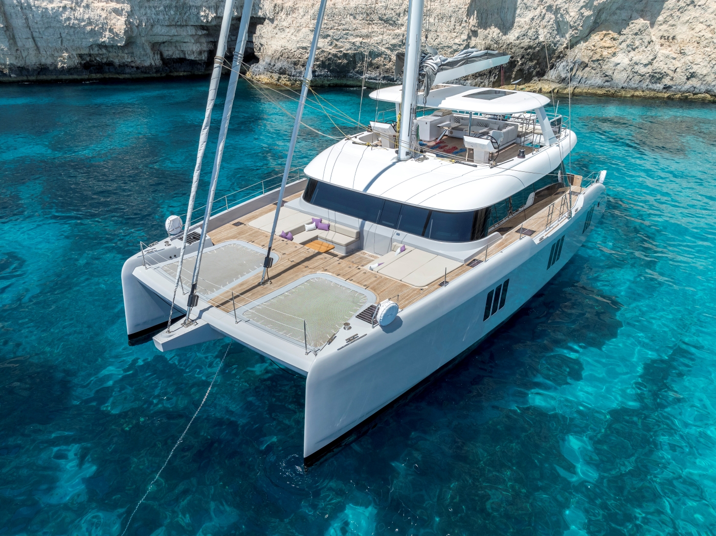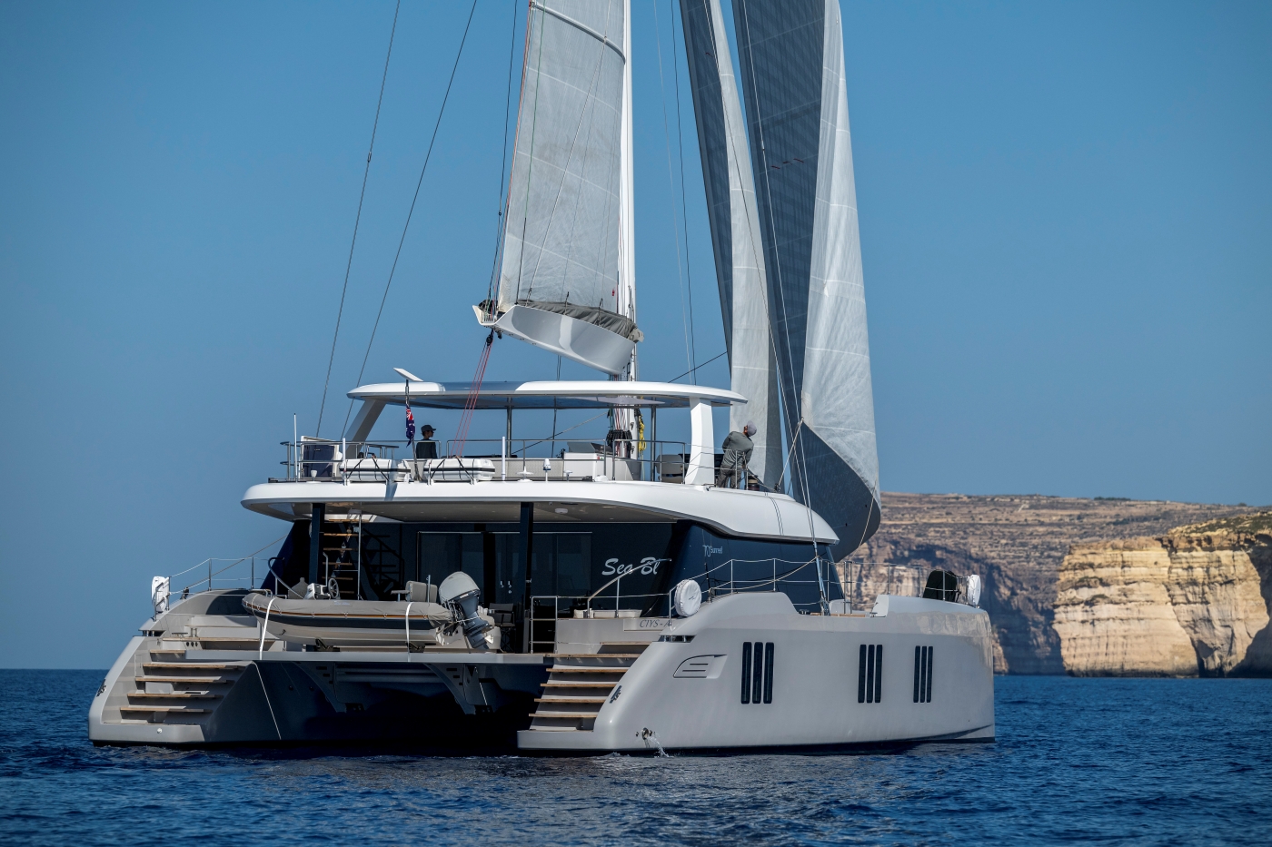 Sailing yacht SEA BLISS is a 22.77m (74' 8") Sunreef 70 catamaran launched in 2024 and offering opportunities for blissful charters for up to eight guests in four ensuite cabins. Spacious exteriors and elegant interiors characterise the yacht and the three crew complete the charter package.