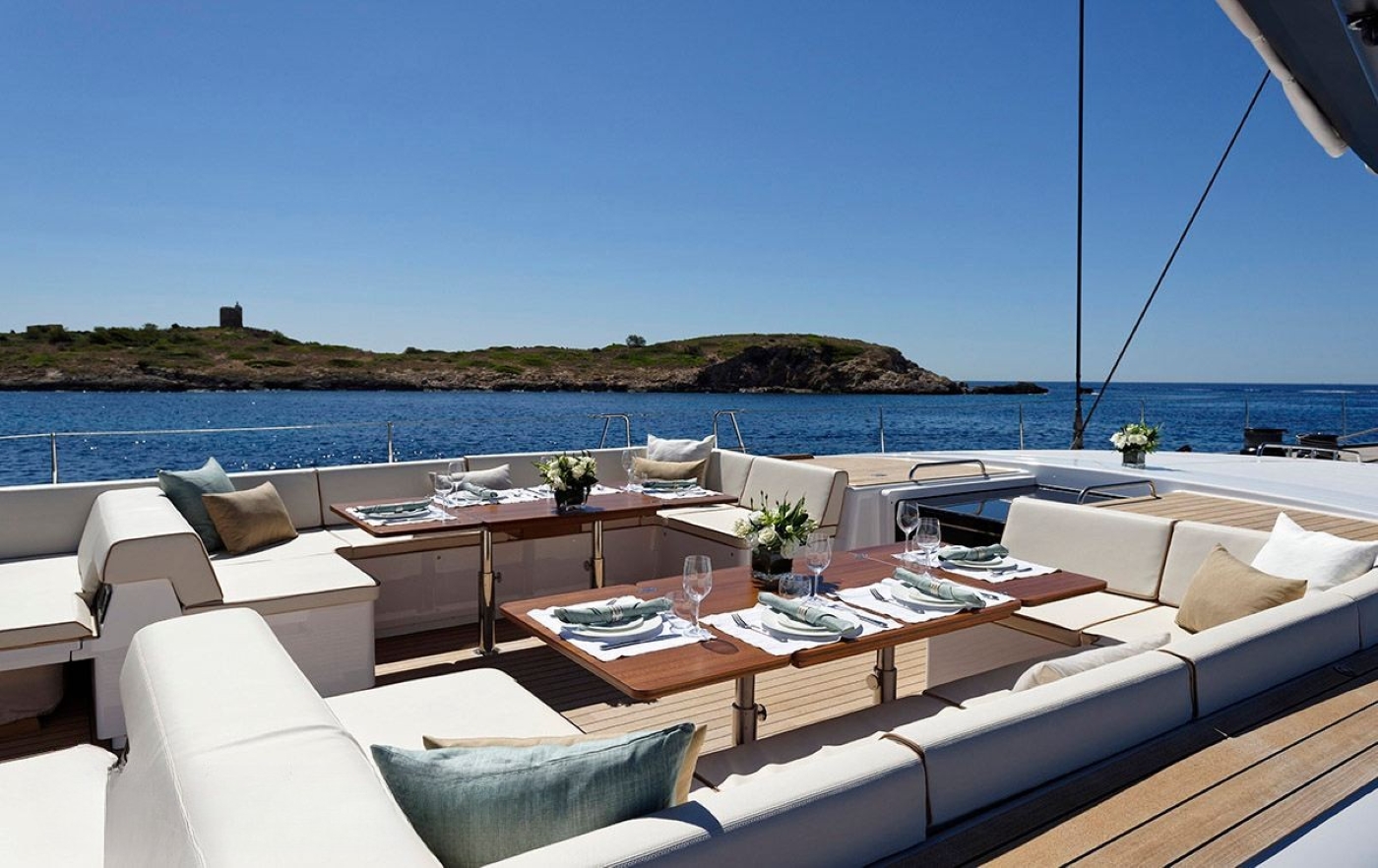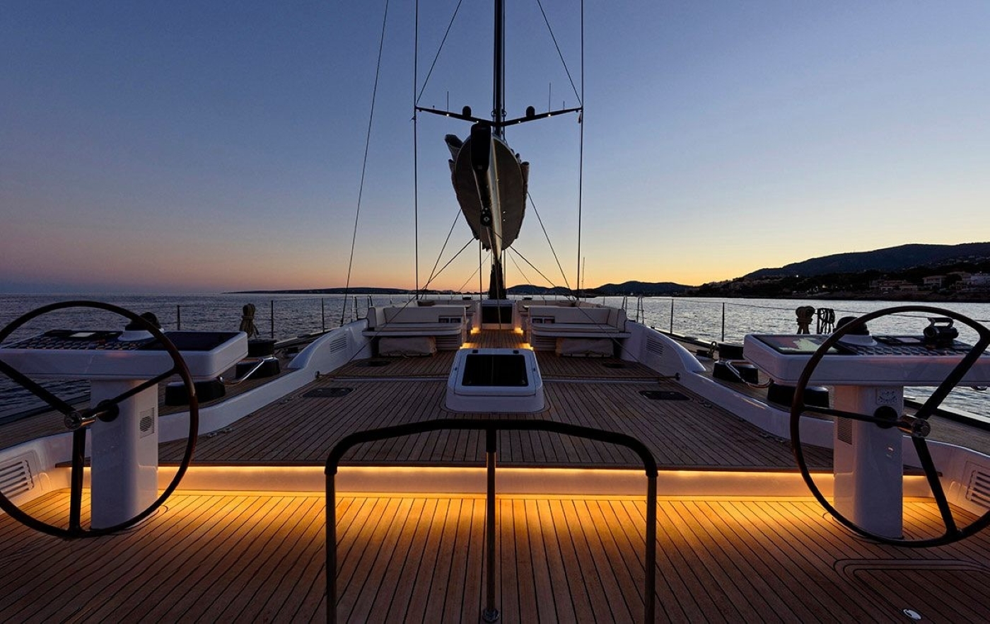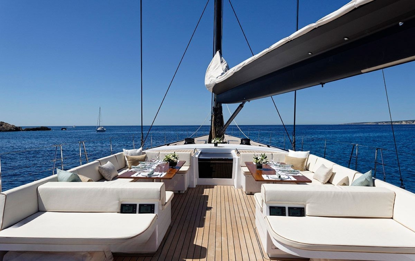 DARLIN has been developed for both blue water and long-distance cruising. Ideal for competing in the world's most important regattas, she is the flush deck version, which features a split backstay, square-top mainsail, and high modulus spars. Thanks to her incredibly vast deck space, she is an unrivaled luxury cruising option, in addition to her racing capabilities. Guests may wish to sit back in the capacious aft cockpit, where two tables can seat a good number of guests, ideal for entertaining. Aft of the guest cockpit is two comfortable sun pads, followed by dual helms and further deck area. Her foredeck is equally as spacious and relaxing. Graceful yet powerful and hull lines, as has the Swan yachts are renowned for, showcase a real beauty whether under sail or at anchor.