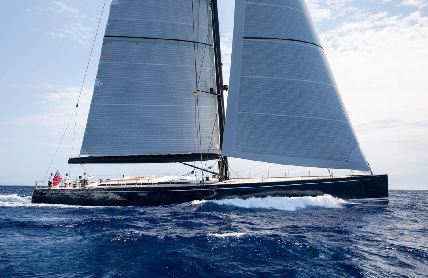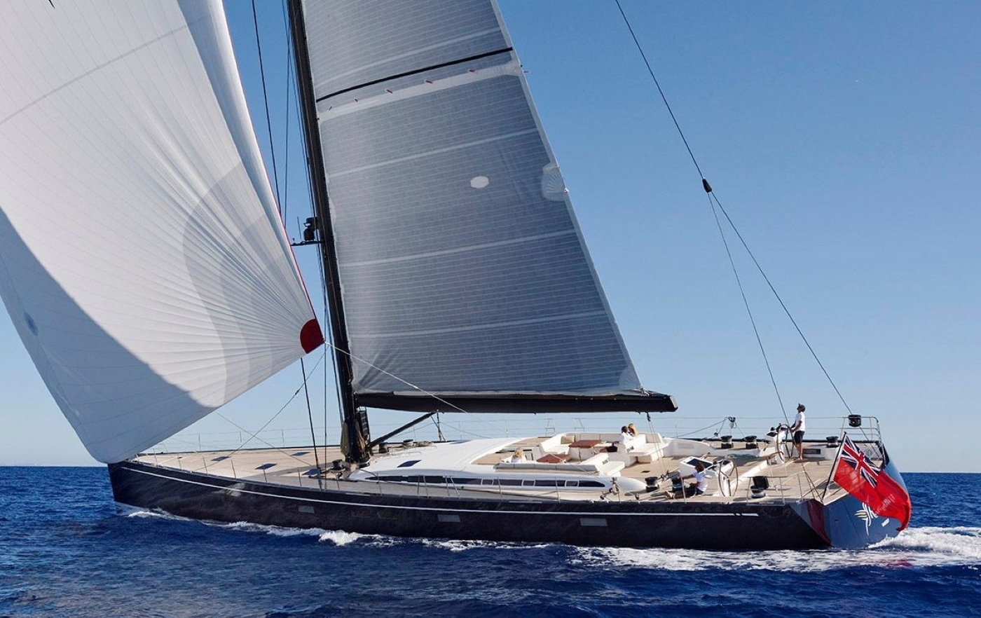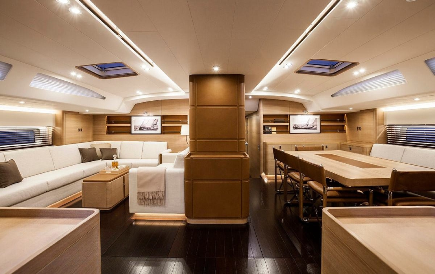 DARLIN has been developed for both blue water and long-distance cruising. Ideal for competing in the world's most important regattas, she is the flush deck version, which features a split backstay, square-top mainsail, and high modulus spars. Thanks to her incredibly vast deck space, she is an unrivaled luxury cruising option, in addition to her racing capabilities. Guests may wish to sit back in the capacious aft cockpit, where two tables can seat a good number of guests, ideal for entertaining. Aft of the guest cockpit is two comfortable sun pads, followed by dual helms and further deck area. Her foredeck is equally as spacious and relaxing. Graceful yet powerful and hull lines, as has the Swan yachts are renowned for, showcase a real beauty whether under sail or at anchor.