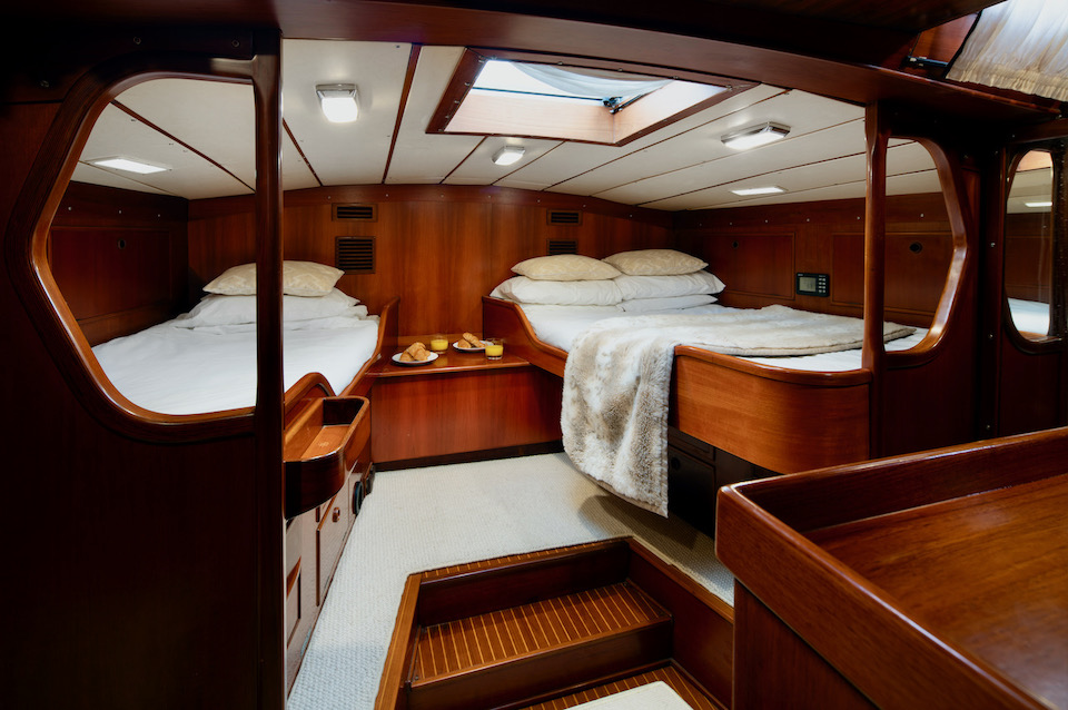 There are four en-suite cabins configured as two doubles and two twins. There is additional accommodation for the crew.