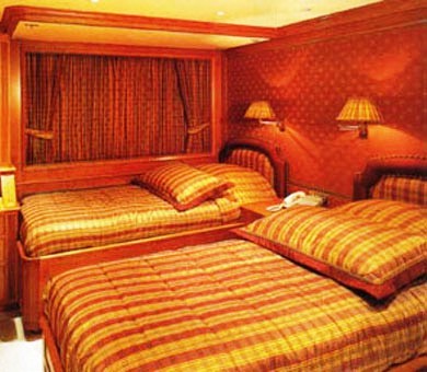 Below deck, ATMOSPHERE’s decor is spacious and elegant with exquisitely crafted cherrywood panelling and warm tones throughout. Her interior design is tastefully warm and homely with a large comfortable salon, separate dining and six generous ensuite cabins. The salon and staterooms have all been fitted with audio visual entertainment systems.